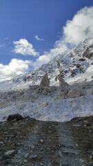Si sale sci a spalle fino ai canali che scendono da Terra Nera, qui la strada e' sbarrata da un paio di grosse valanghe, in…
