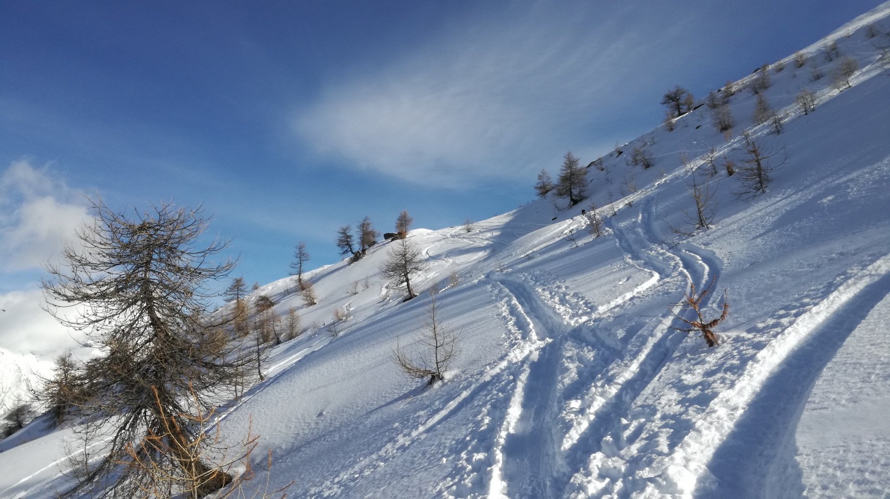 | polverevento | Partenza senza neve | polverevento | inizio canale | polverevento | | polverevento | Cime du Laro | polverevento | Vista dal Passo | polverevento | Paola Luigi Ikea e Don | polverevento | | polverevento | Le pendenze della Cima du Laro