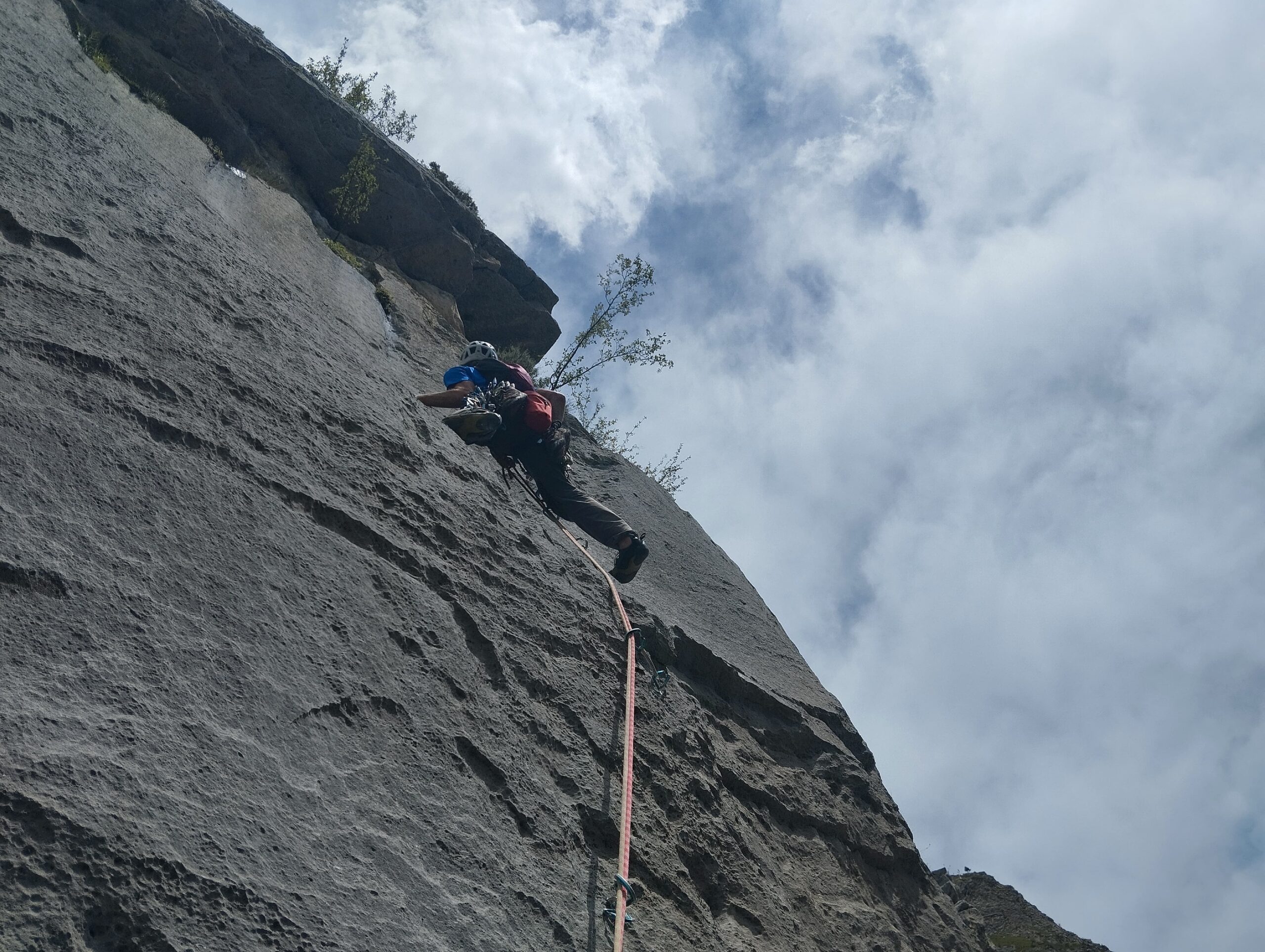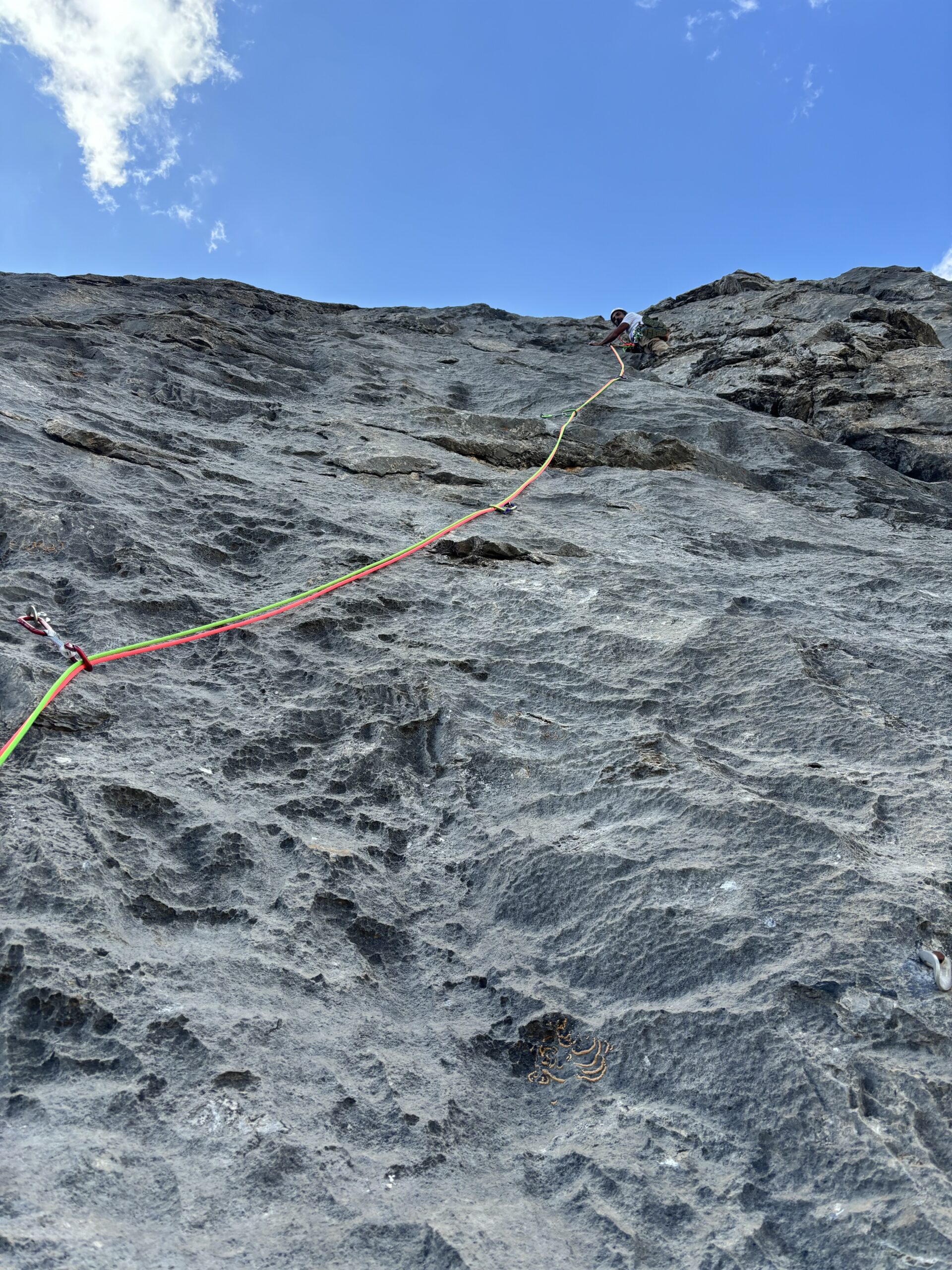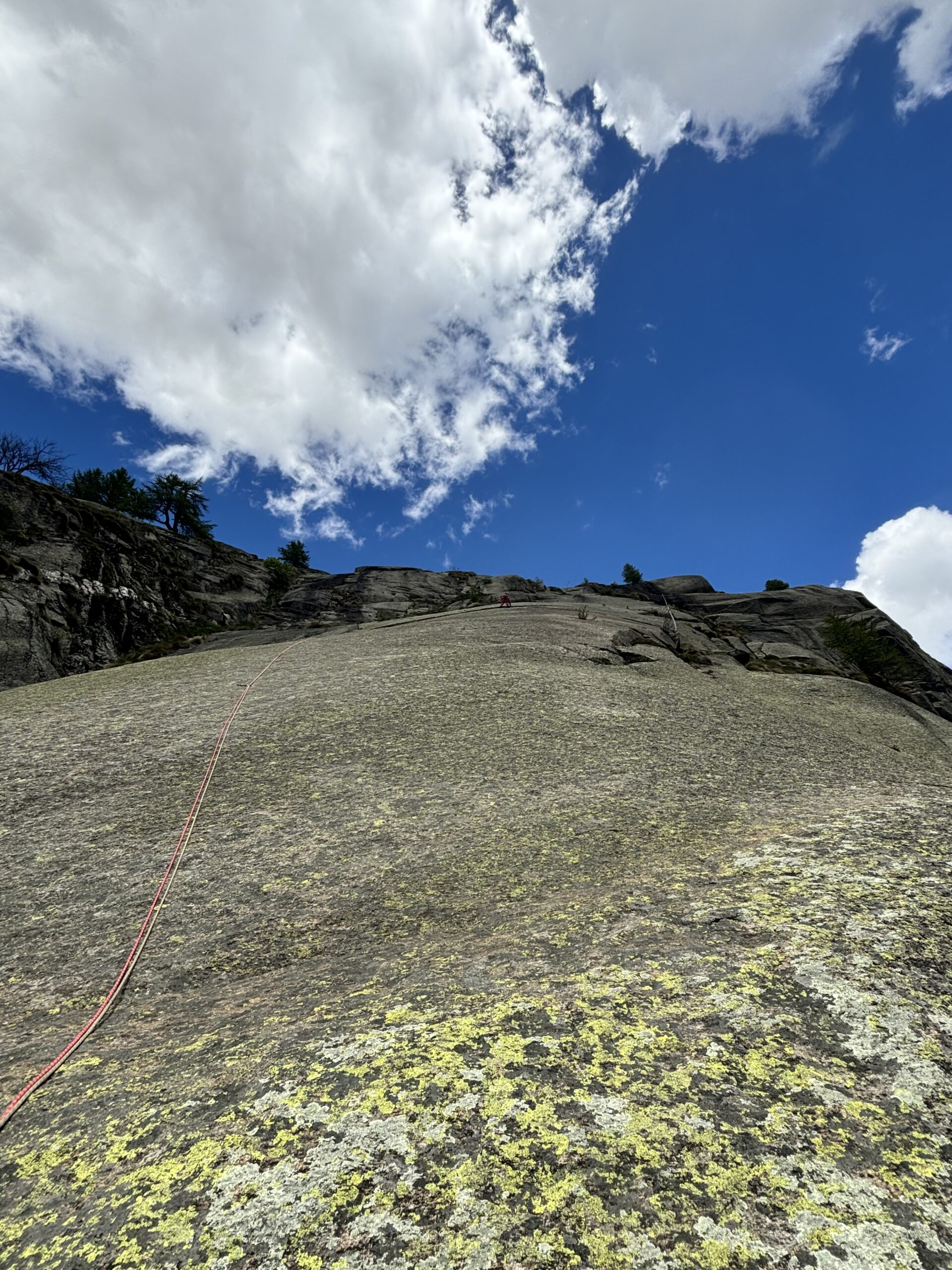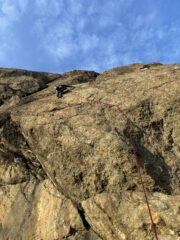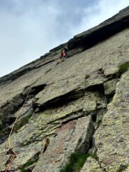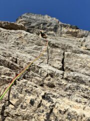 | popeantonio | La parete della via. L'attacco è sul punto più basso del primo contrafforte | popeantonio | Il primo tiro | popeantonio | L'uscita del primo tiro | popeantonio | La calata dalla quarta sosta | popeantonio | Il quinto tiro | popeantonio | Dall'ultima sosta | popeantonio | La calata finale
