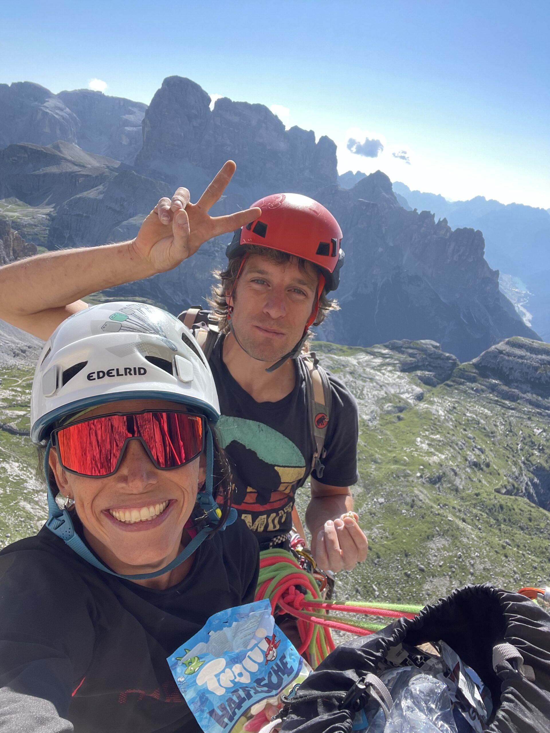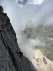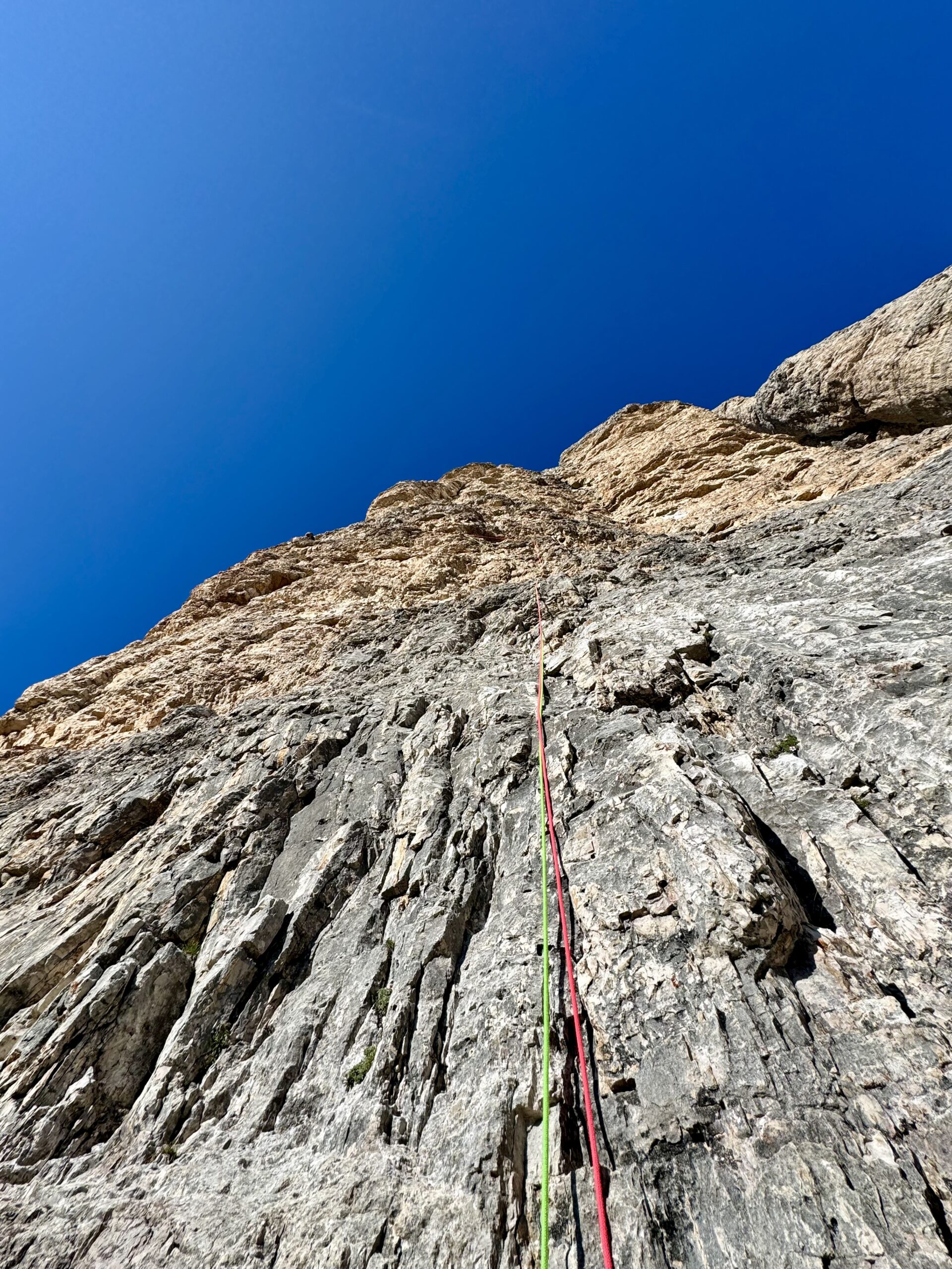 Via iconica, impressionante! La linea è pazzesca, spiace quasi un po’ lasciare il filo dello spigolo dopo l3. Con mezze da 60 abbiamo unito l1+l2,…