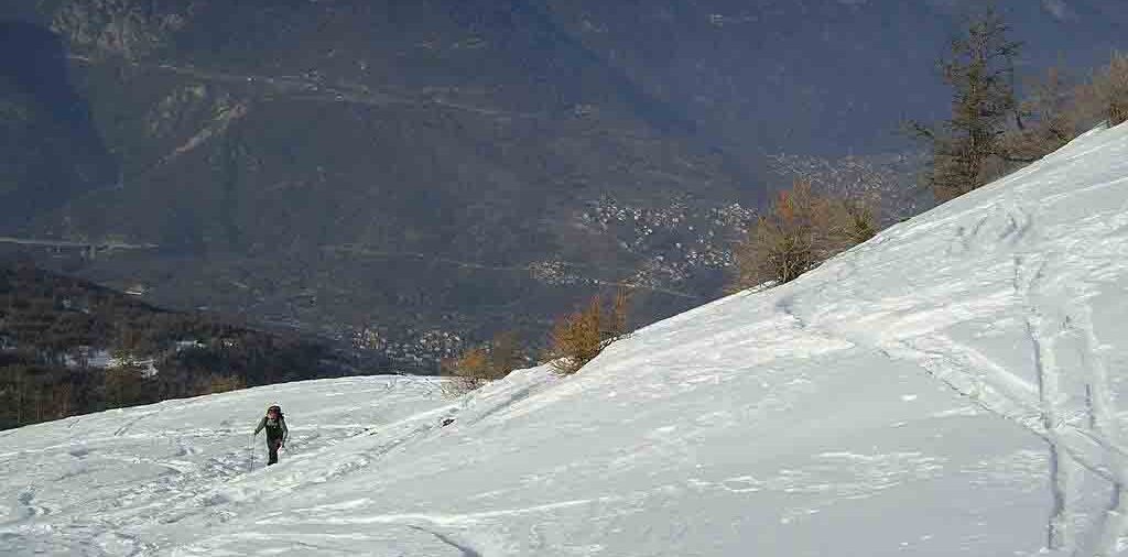 Partiti dove inizia la neve, presso le Grange Soulliet, sul versante più a est. Neve dura in trasformazione, ieri portante e abbastanza sicura date le…