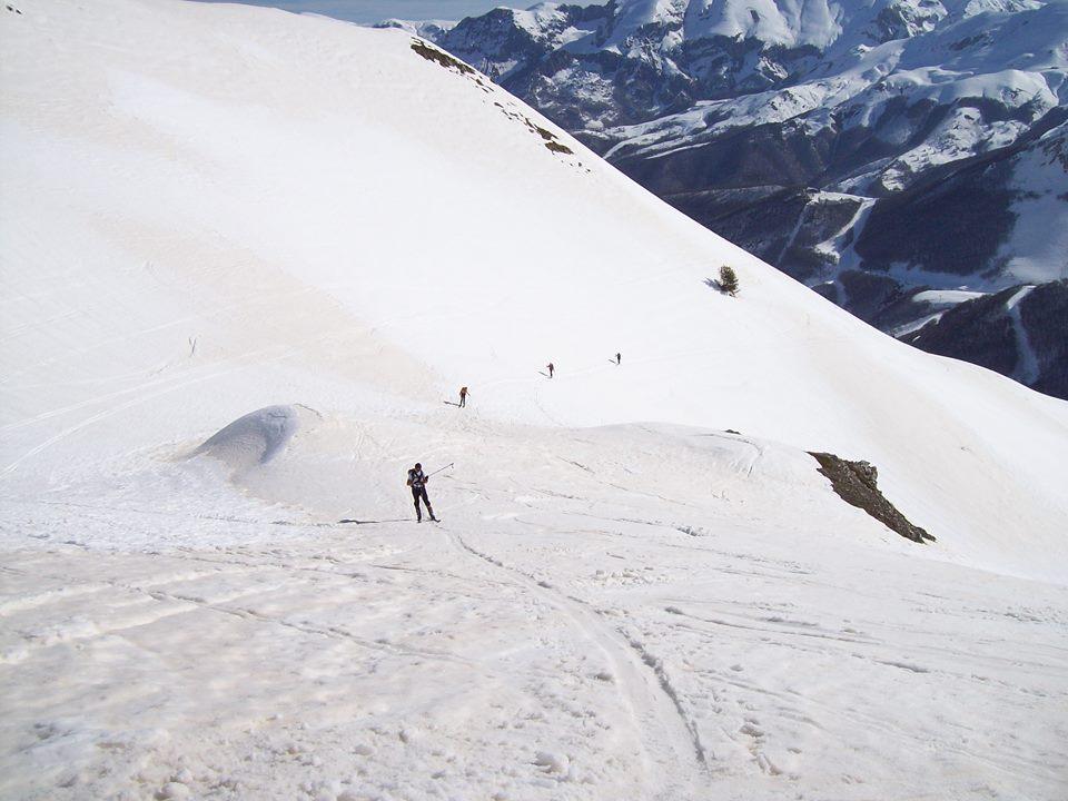 La temperatura alta non lasciava dubbi sulla qualità della neve. In salita fino alle nove la neve era abbastanza compatta, dopo il caldo ha lavorato…