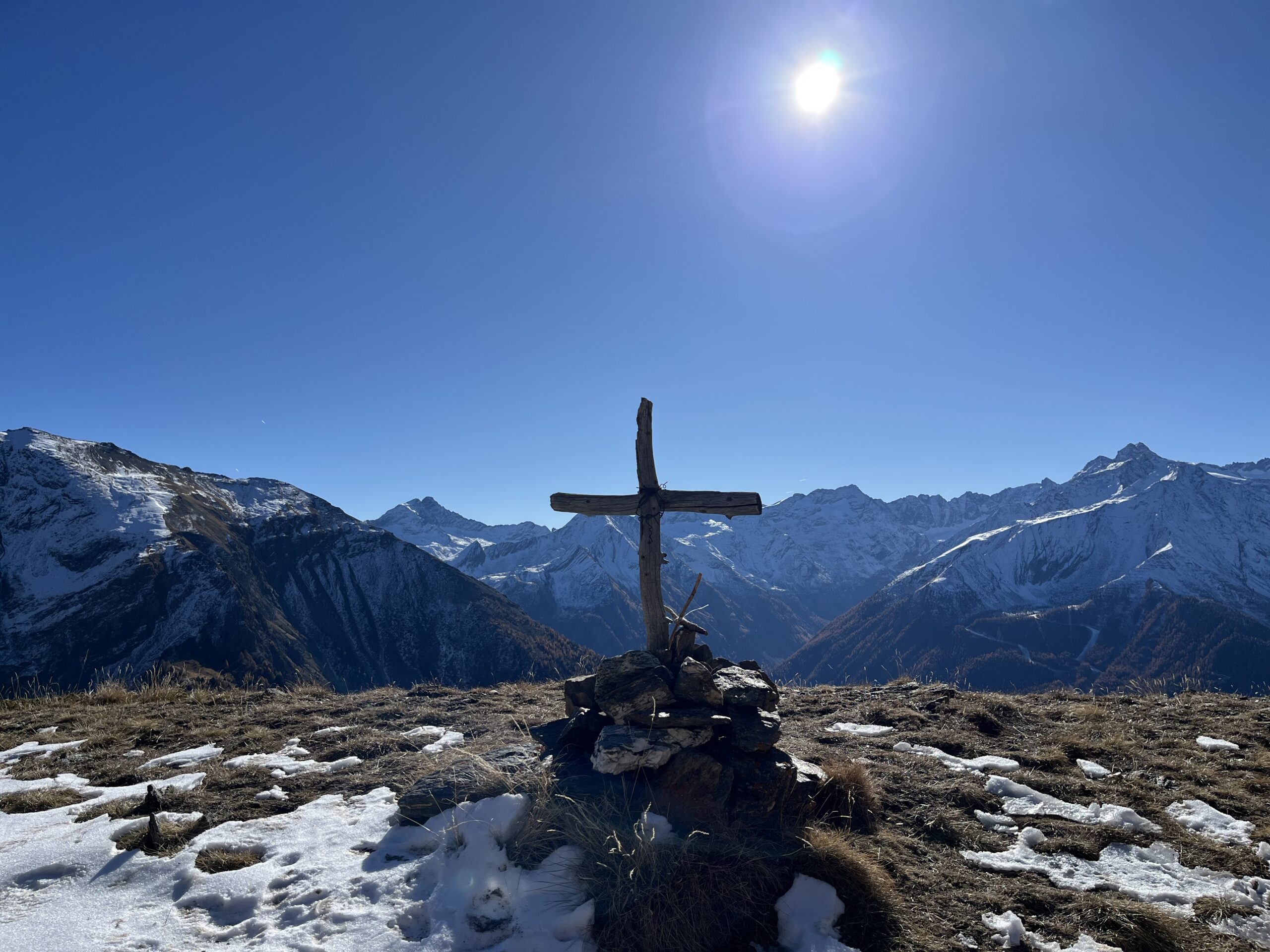 Partiti con cielo nuvoloso, ma dopo soli 10 minuti é uscito un sole caldissimo. Lasciata la macchina nel parcheggio di Saint Rhemy siamo saliti e…