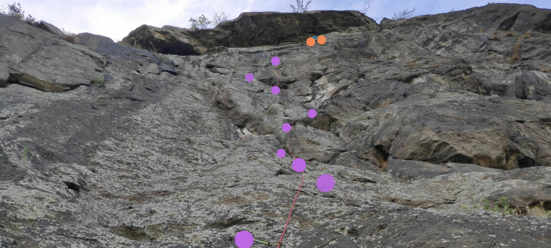 Via non per principianti, mai oltre il 6a, ma la chiodatura non sempre da falesia, potrebbe rovinare la salita a chi non padroneggia un po'…