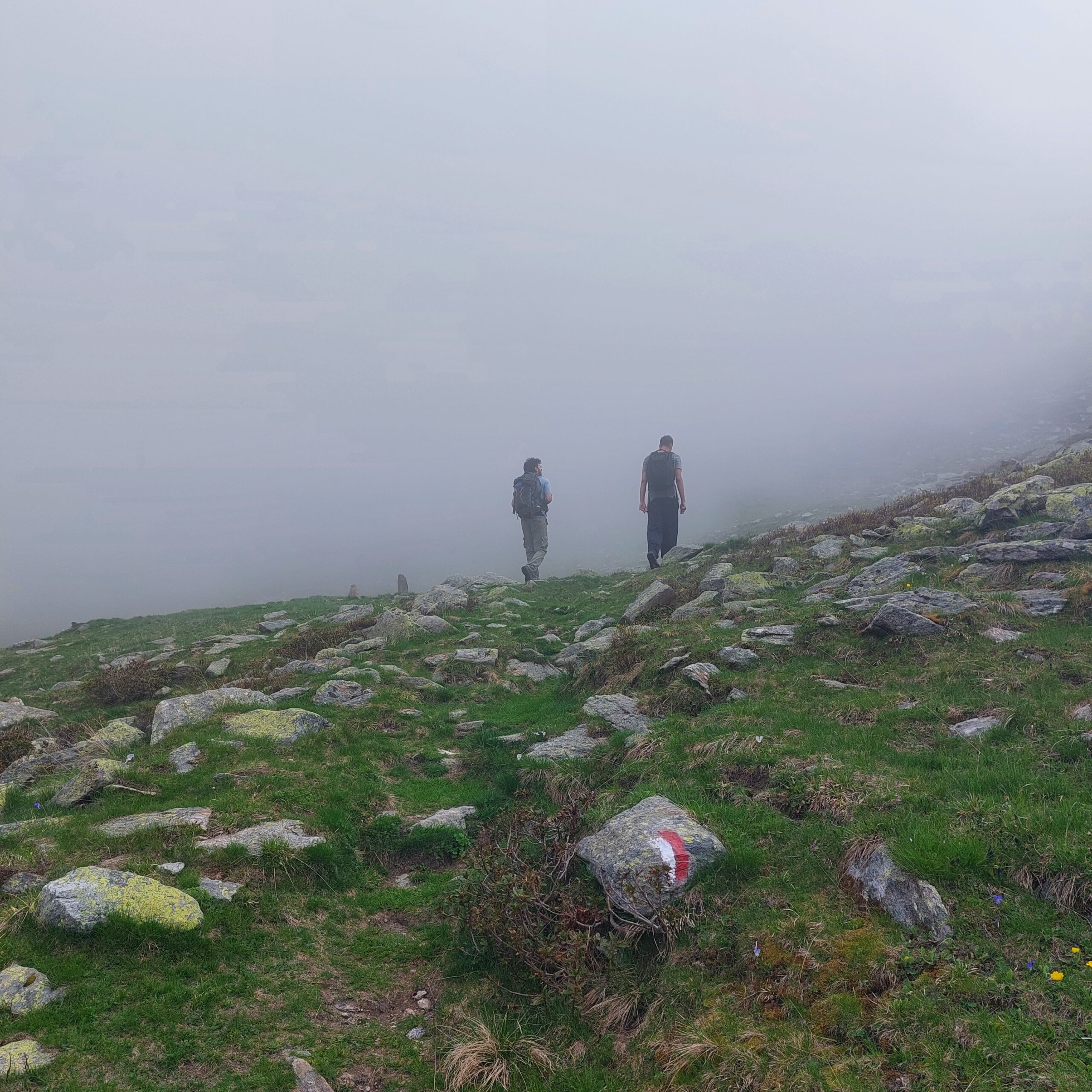 Da Ruà a Riba del Gias. Giornata di nebbia e rischio pioggia per cui non abbiamo proseguito lungo l'anello. Con Enrico e Adriano