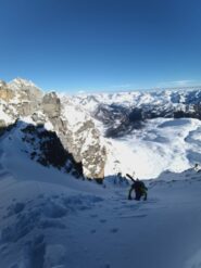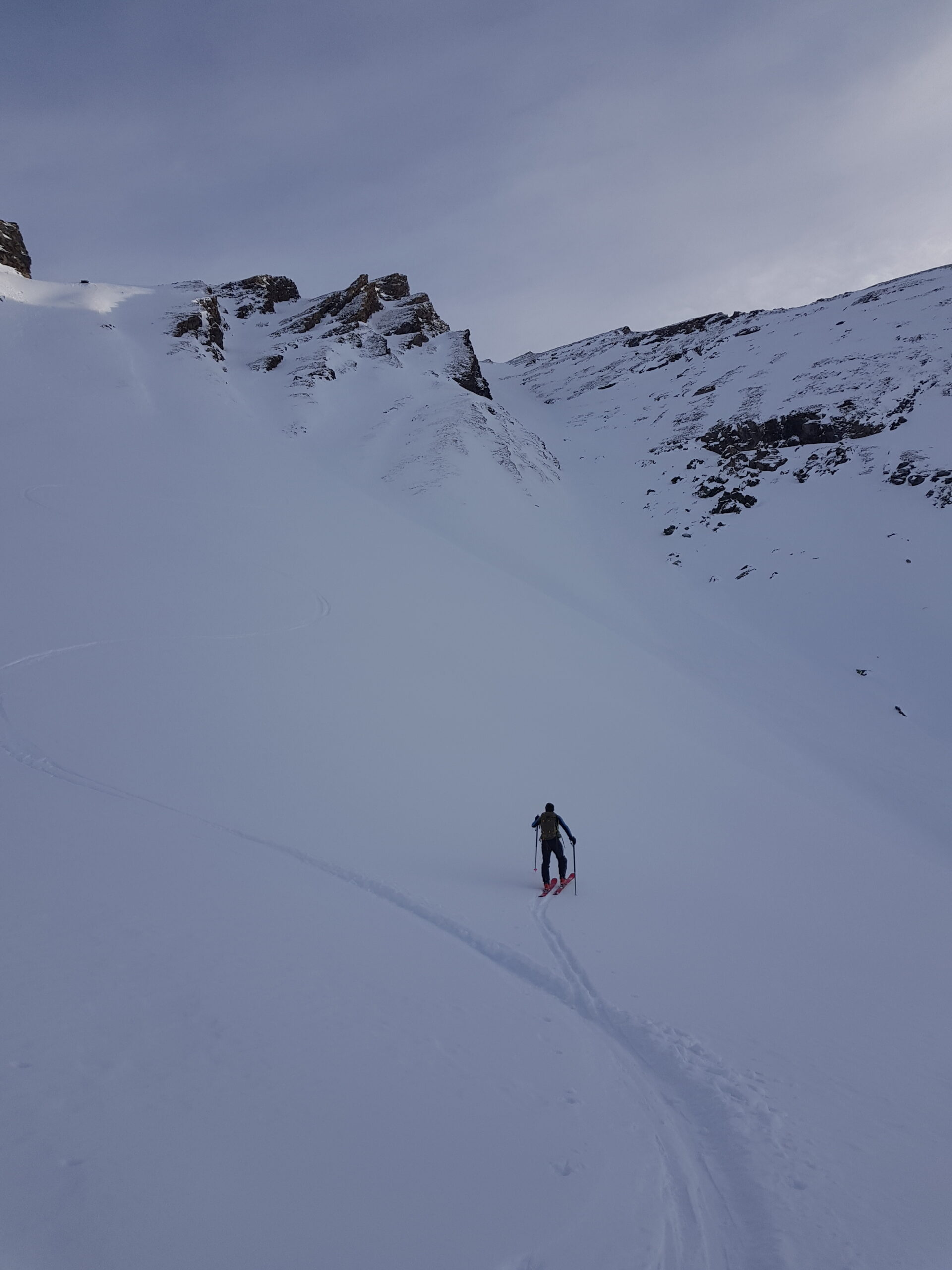 Uscita rapida ma intensa, ottimo fondo gelato nei larghi pendii d'accesso, accumuli ventosi nel primo largo canale su cui stare attenti. Una volta entrati nel…