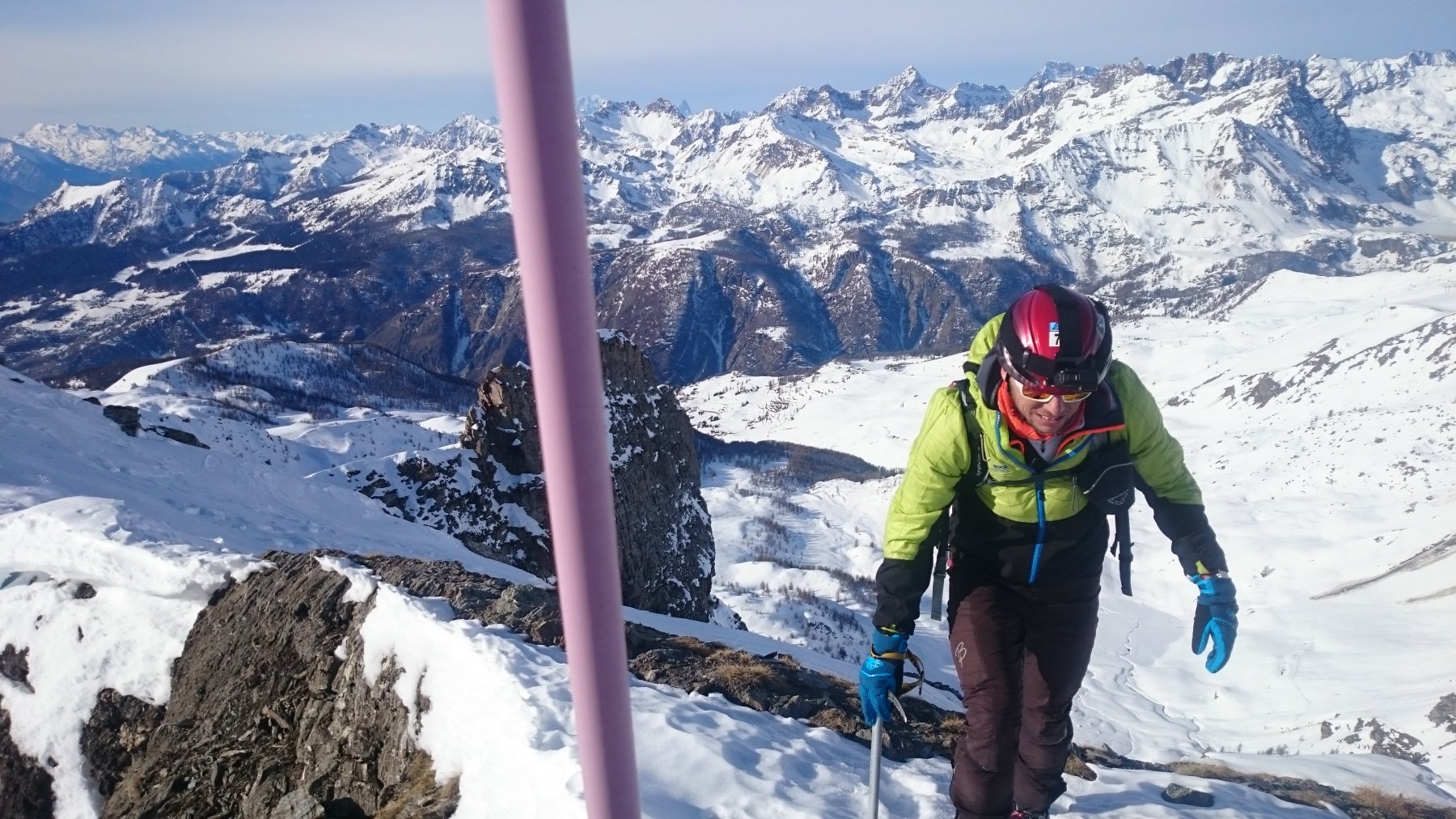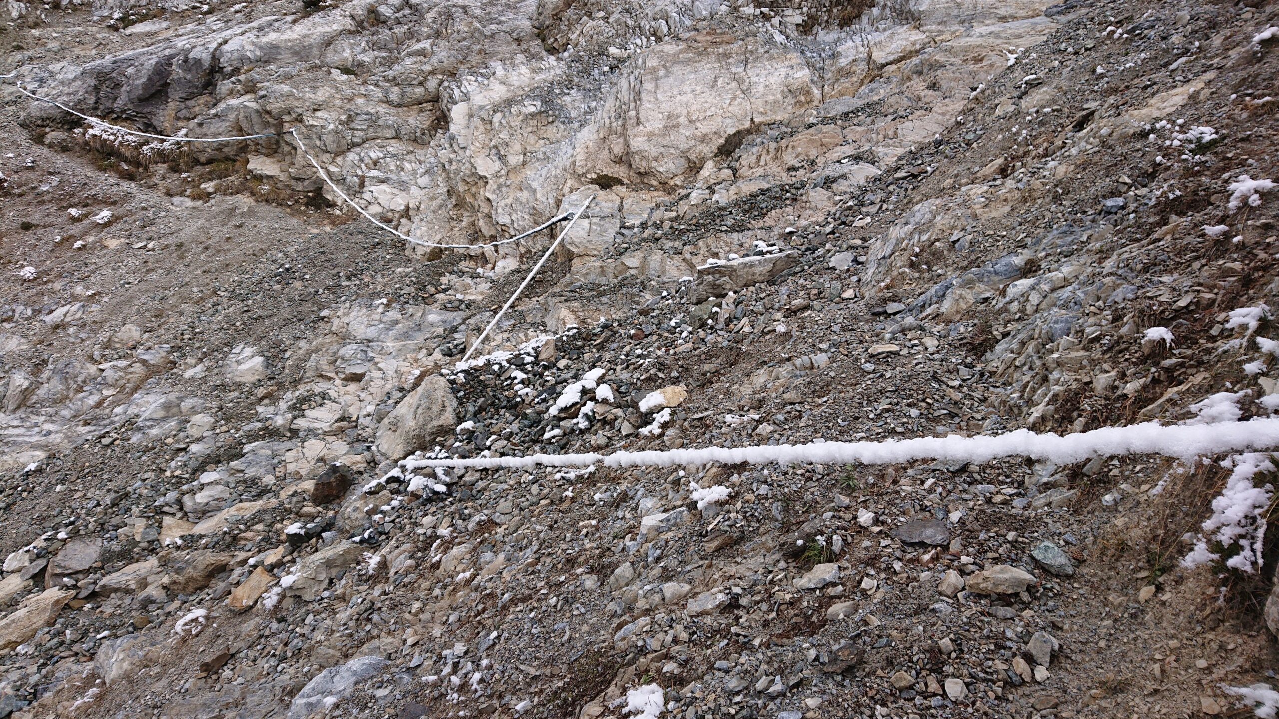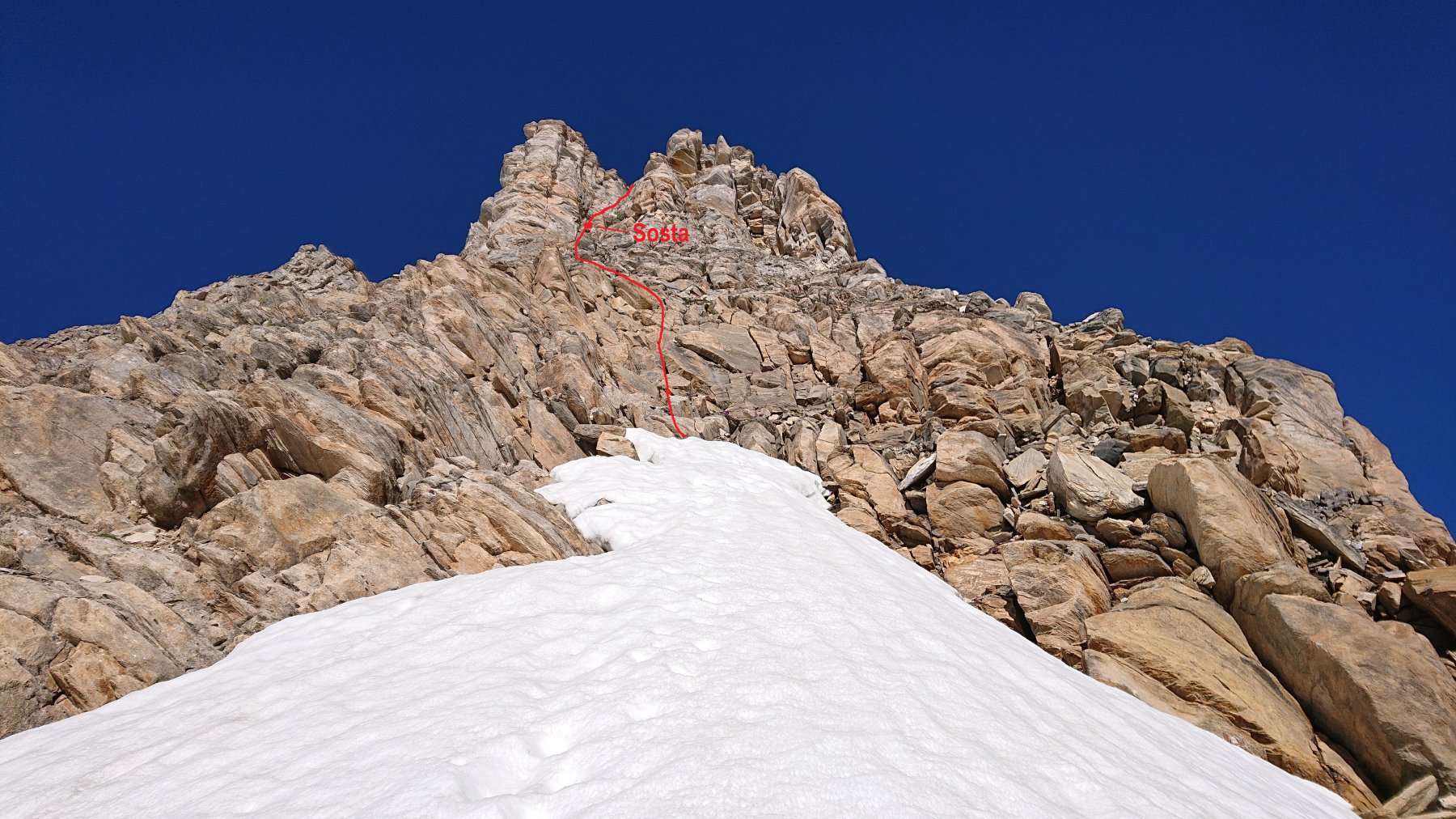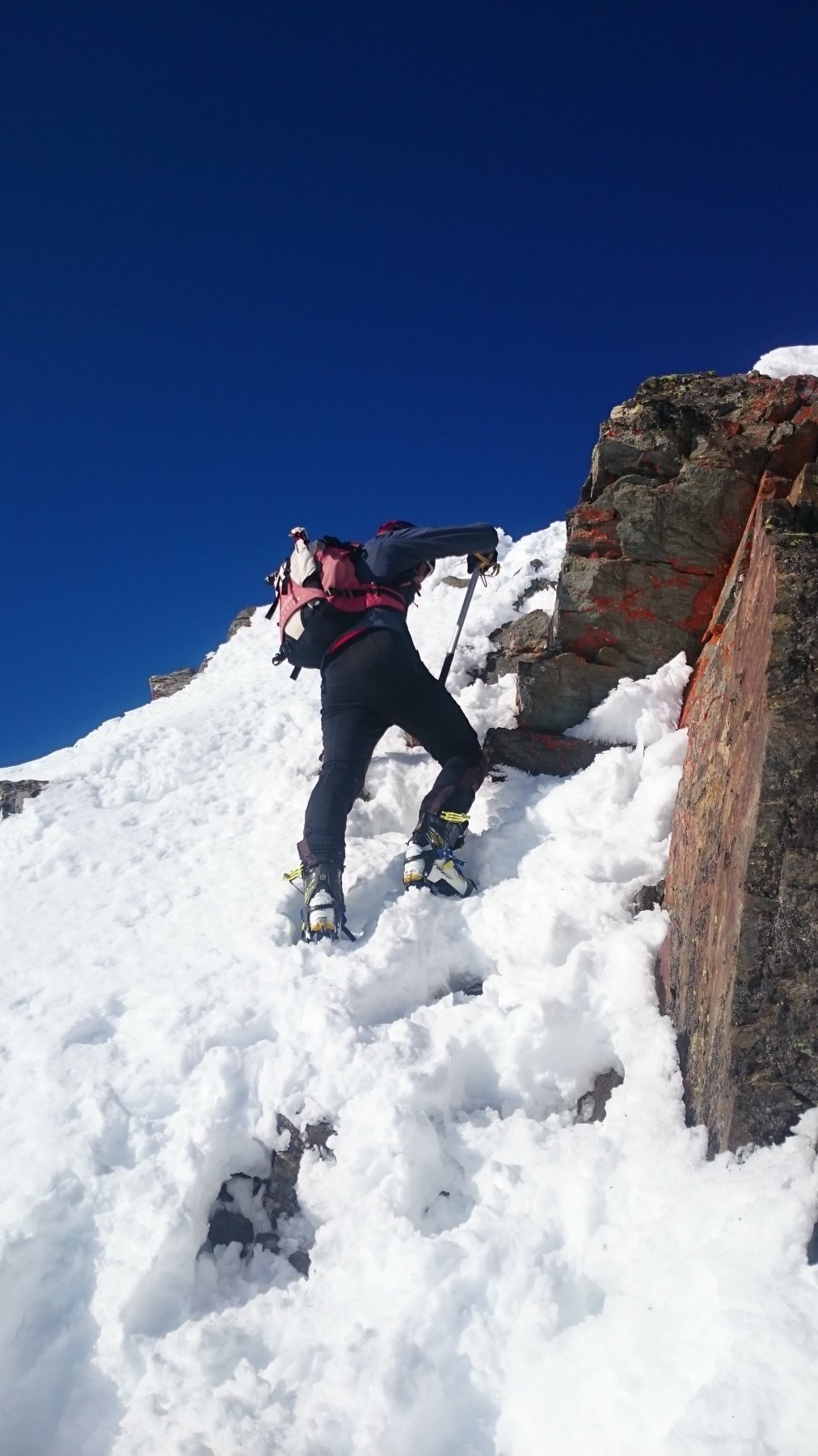 | rebatta-bousa | Salendo a Colonna | rebatta-bousa | Ciuffi di neve | rebatta-bousa | Colonna | rebatta-bousa | Omino di vetta | rebatta-bousa | Traverso per la vetta | rebatta-bousa | Bivio per Larsinaz | rebatta-bousa | Il cavo di sicurezza si è un po' staccato causa un masso che lo ha colpito | rebatta-bousa | Si passa comunque senza problemi