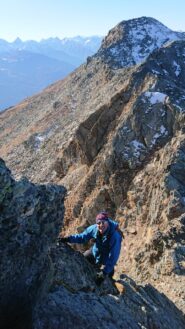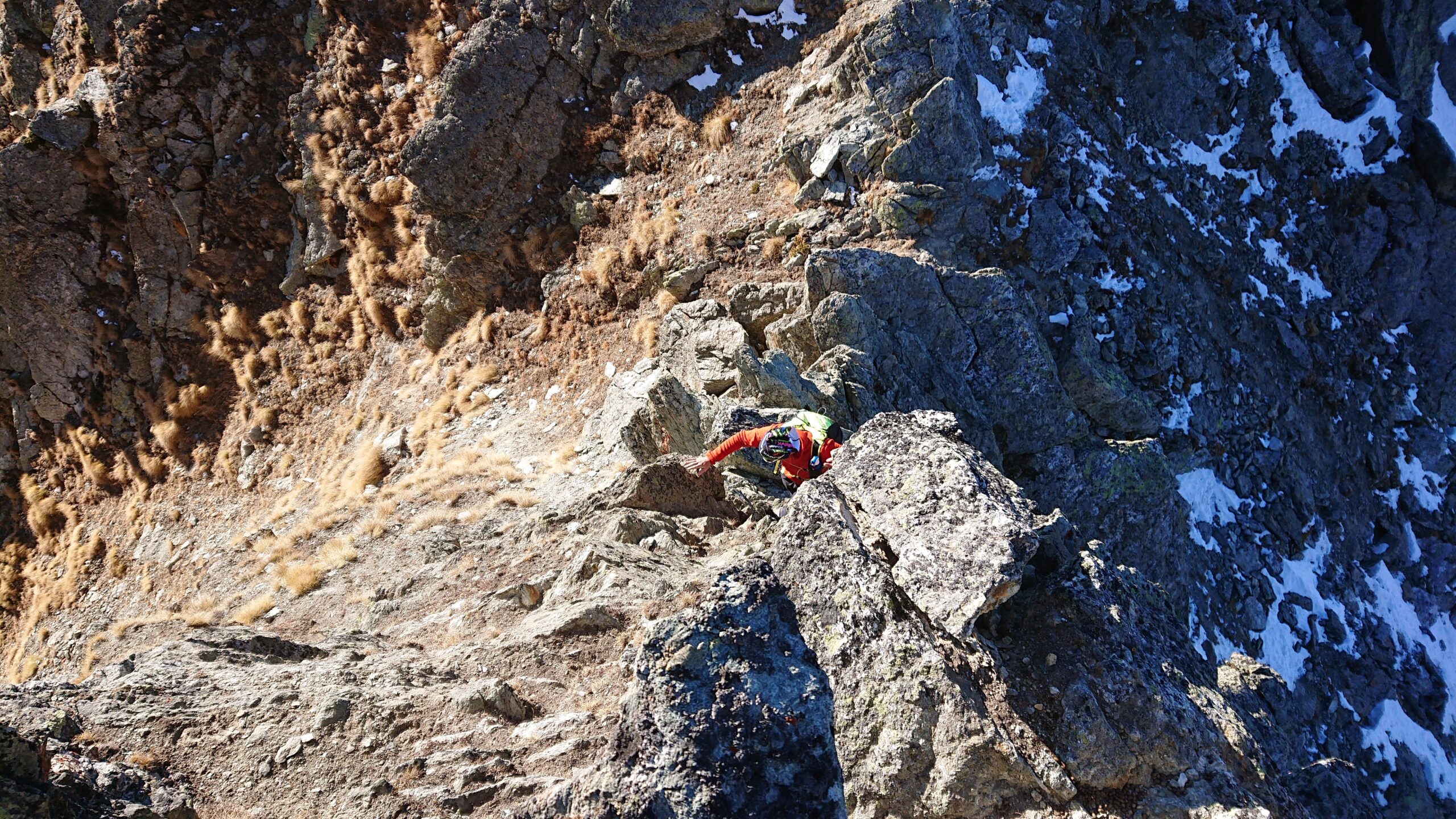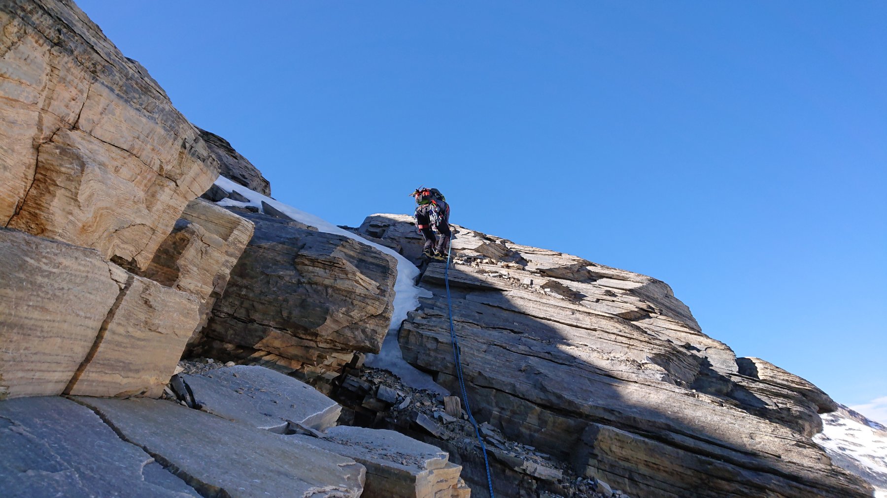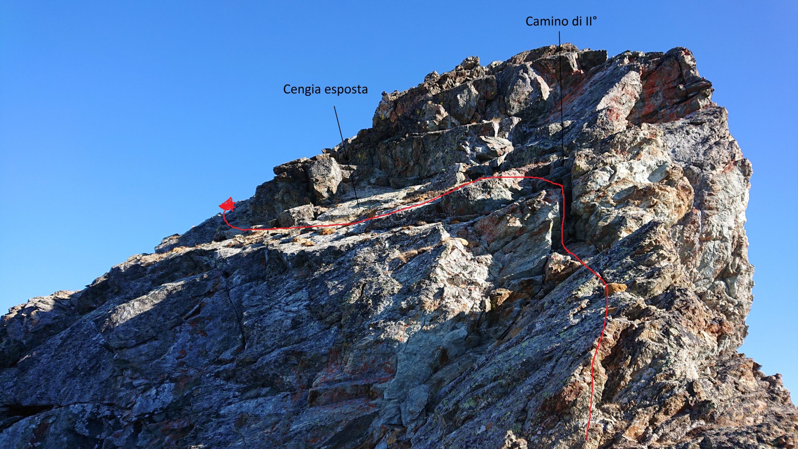 | rebatta-bousa | Salendo a Colonna | rebatta-bousa | Ciuffi di neve | rebatta-bousa | Colonna | rebatta-bousa | Omino di vetta | rebatta-bousa | Traverso per la vetta | rebatta-bousa | Bivio per Larsinaz | rebatta-bousa | Il cavo di sicurezza si è un po' staccato causa un masso che lo ha colpito | rebatta-bousa | Si passa comunque senza problemi