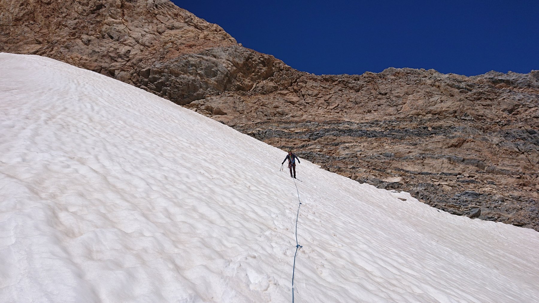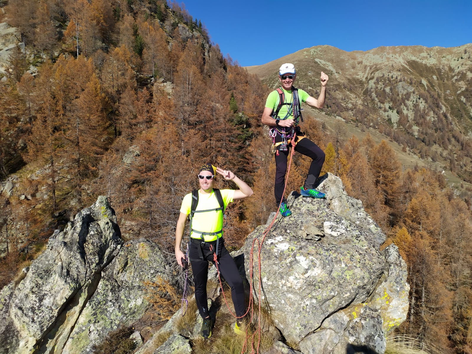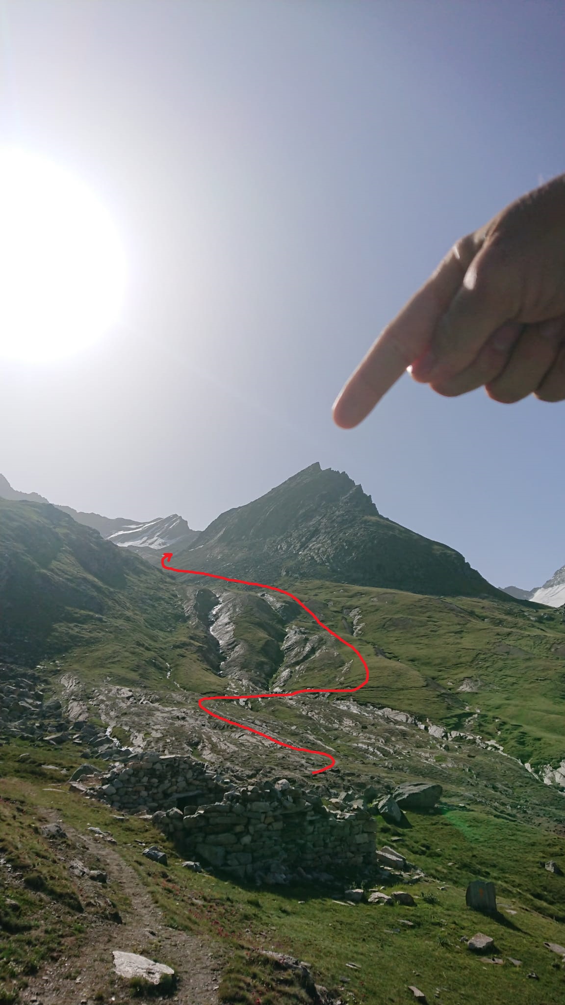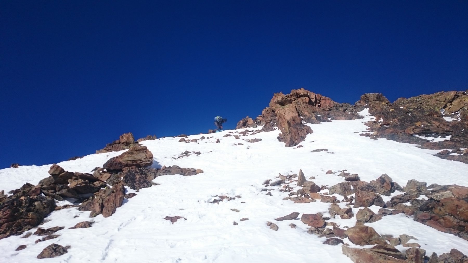 | rebatta-bousa | Salendo a Colonna | rebatta-bousa | Ciuffi di neve | rebatta-bousa | Colonna | rebatta-bousa | Omino di vetta | rebatta-bousa | Traverso per la vetta | rebatta-bousa | Bivio per Larsinaz | rebatta-bousa | Il cavo di sicurezza si è un po' staccato causa un masso che lo ha colpito | rebatta-bousa | Si passa comunque senza problemi