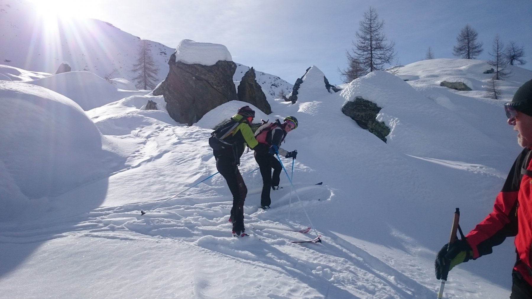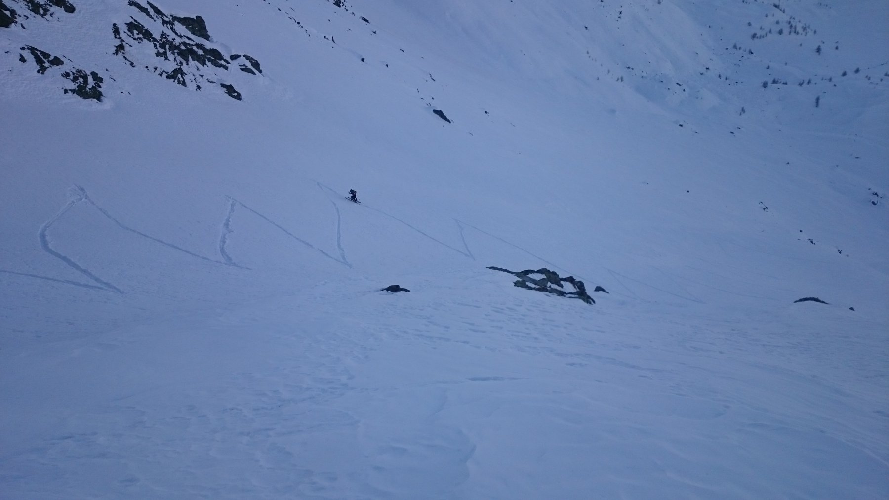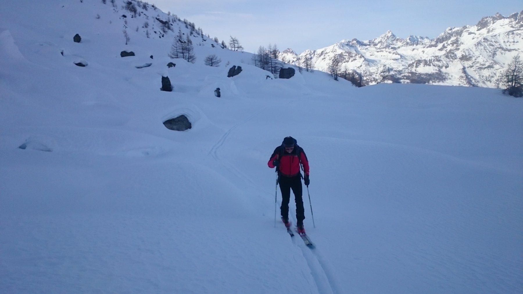 | rebatta-bousa | Nel dimenticato vallone d'Ars | rebatta-bousa | Nella nord, buone condizioni | rebatta-bousa | | rebatta-bousa | Quasi in cresta | rebatta-bousa | In cresta, meglio al sole. | rebatta-bousa | La scultura di Siro | rebatta-bousa | Neve da cinque stelle sulla nord | rebatta-bousa | Ingresso canale secondario nella discesa dal col d'Ars | rebatta-bousa | Canale secondario