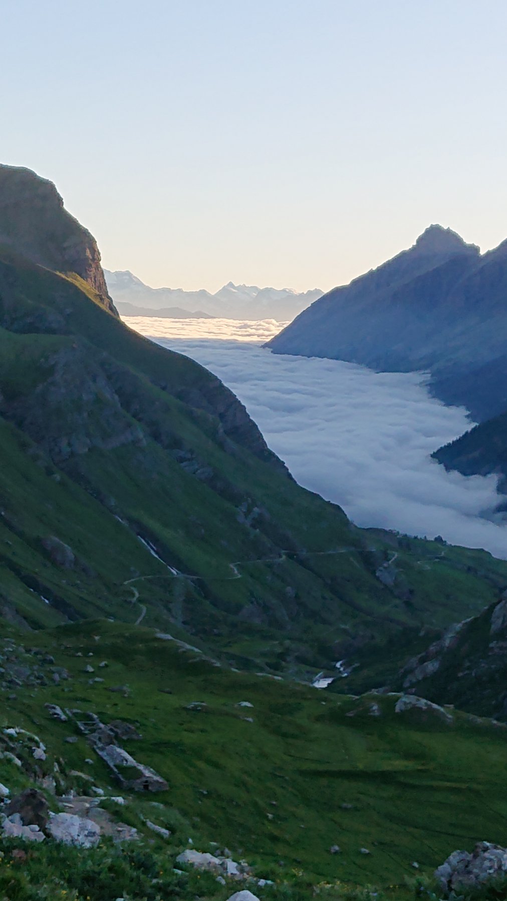 | rebatta-bousa | La luna ci indica la nostra meta. | rebatta-bousa | Mare di nuvole su Aosta | rebatta-bousa | La cresta NE, e stambecchi al pascolo. | rebatta-bousa | Fine nevaio e inizio tratto ripido con la sosta nel camino. | rebatta-bousa | Il camino | rebatta-bousa | Sulla vetta nord | rebatta-bousa | Discesa sulla normale, non bella. | rebatta-bousa | Verso la punta di Goletta | rebatta-bousa | Sotto il colle di Tzanteleina | rebatta-bousa | Ghiacciaio di Tsanteleina
