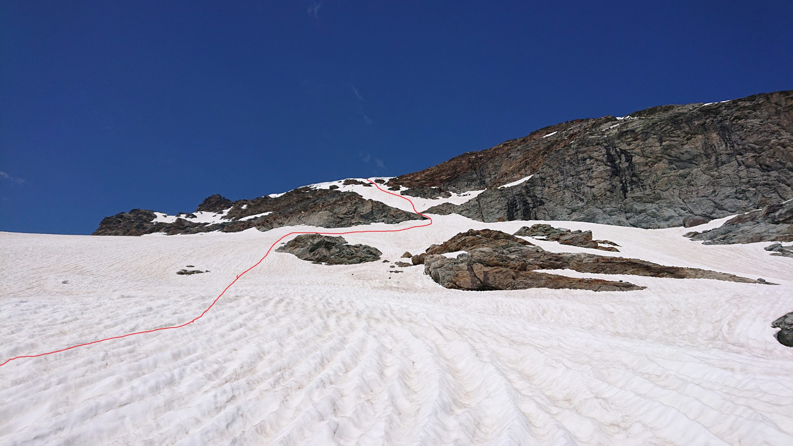 | rebatta-bousa | La nostra linea di salita al Rutor, per ora tutta su neve. | rebatta-bousa | La parte finale per uscire in cresta | rebatta-bousa | Al centro il punto culminante. | rebatta-bousa | Omino costruito.... | rebatta-bousa | Percorso per La Becca du Lac | rebatta-bousa | Il colle del Rutor dalla Becca du Lac | rebatta-bousa | Lago di San Grato | rebatta-bousa | Si rientra al colle del Rutor
