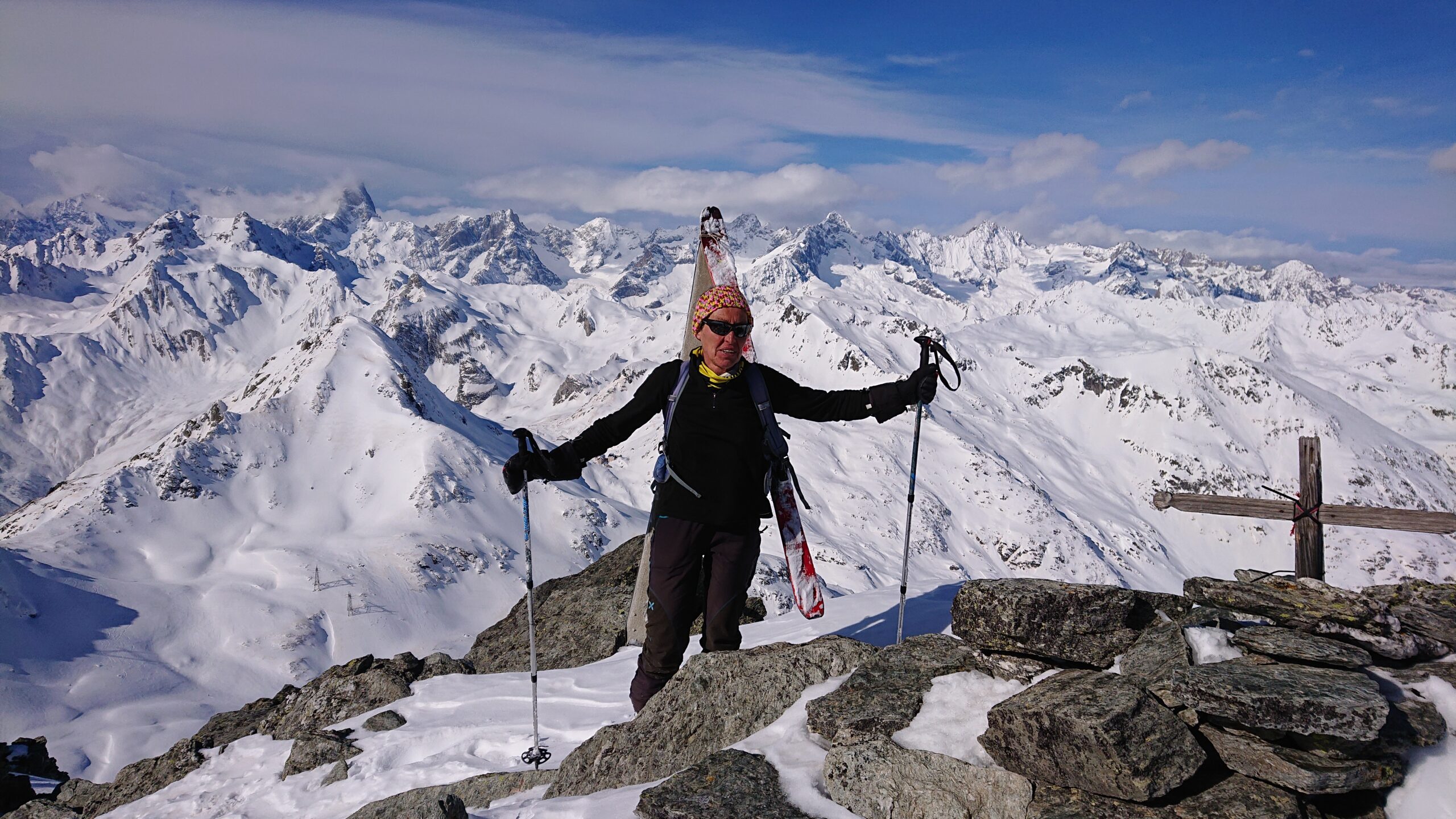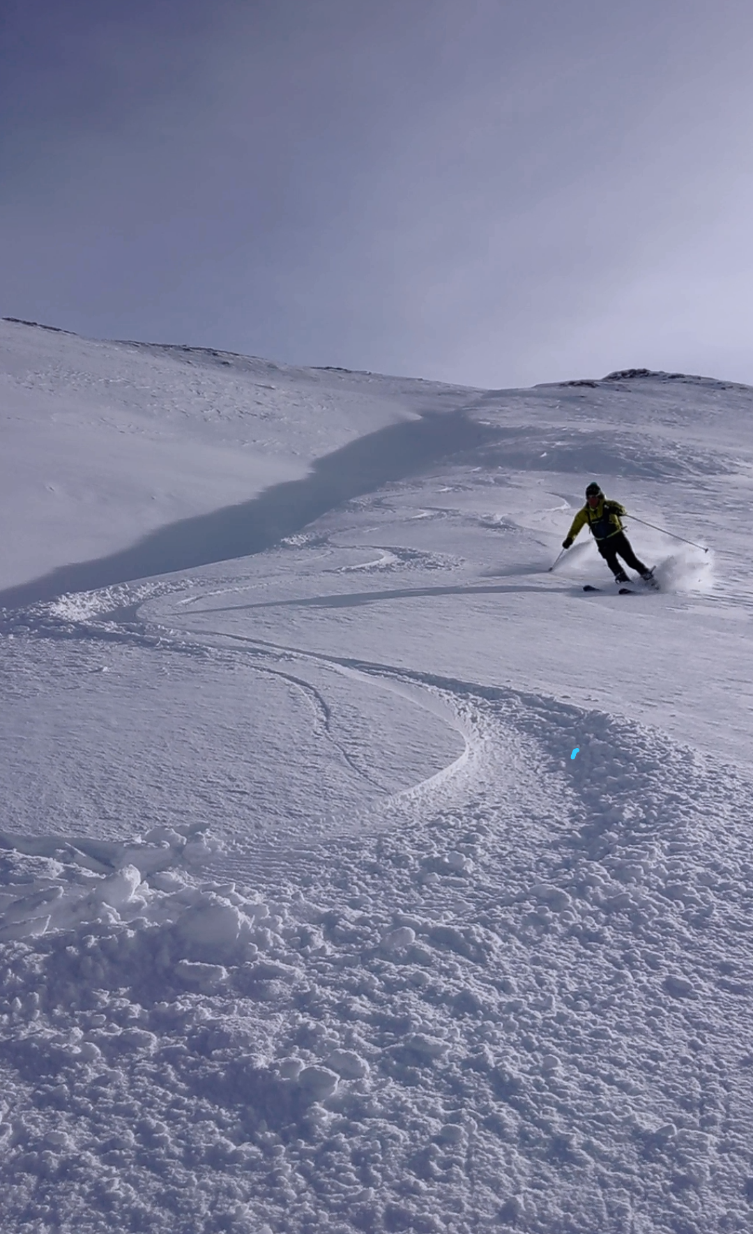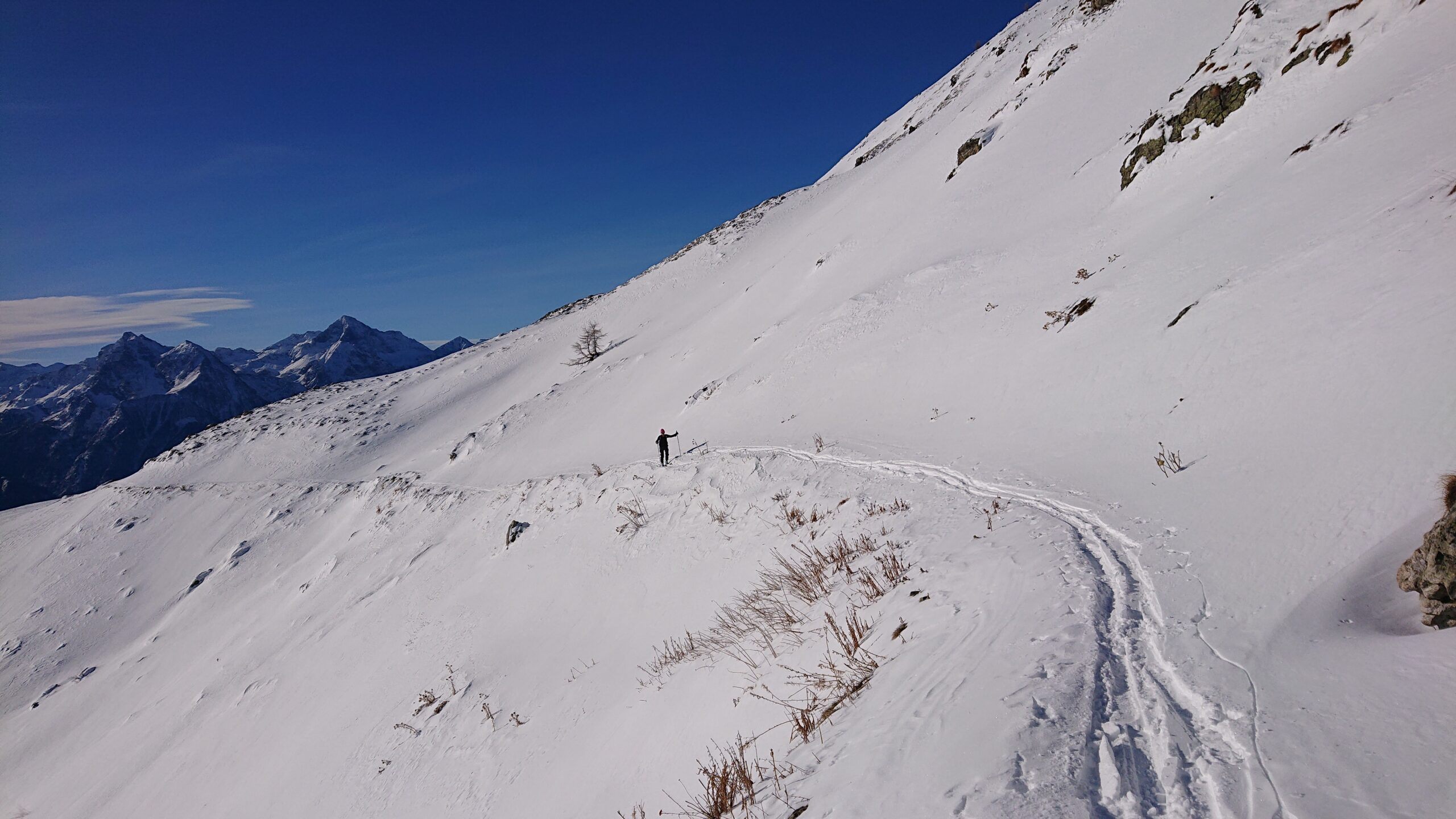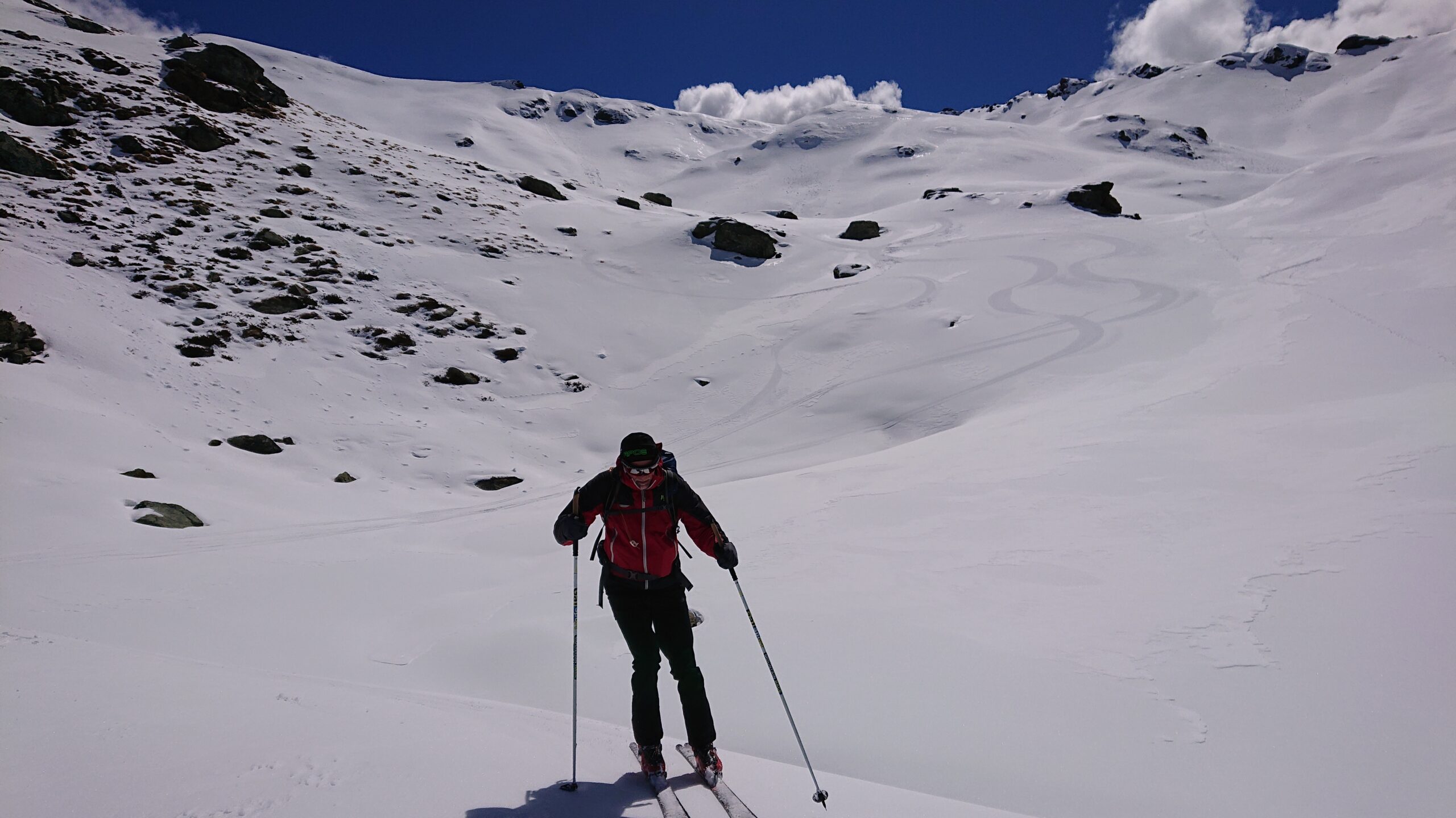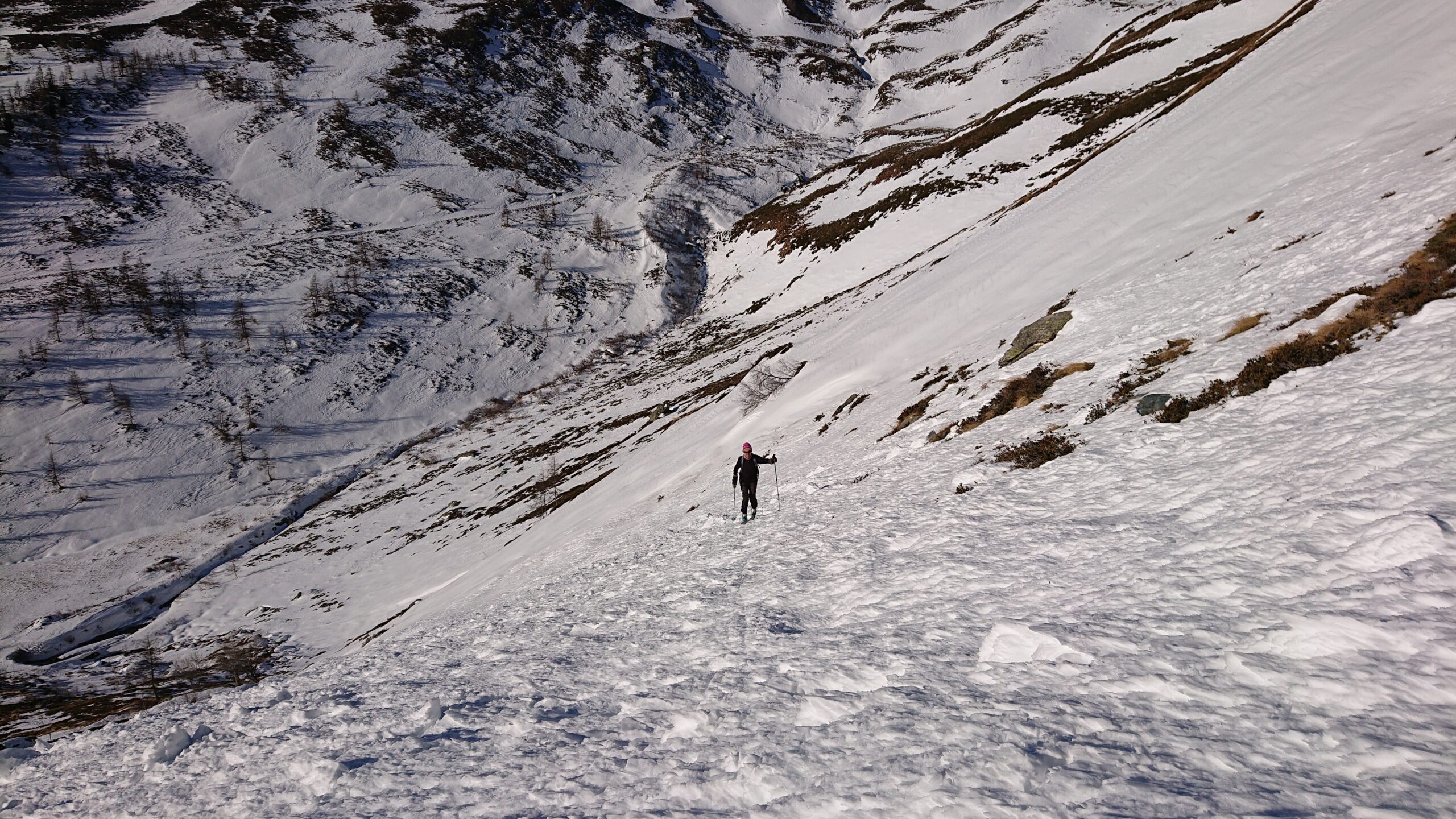 Blu=discesa | rebatta-bousa | Il canale risalito per raggiungere il colletto in cresta | rebatta-bousa | Il colletto e dietro la Entremont Est | rebatta-bousa | Il pendio est che porta in vetta, carico e poco stabile. Abbiamo seguito la traccia del camoscio. | rebatta-bousa | Sulla dorsale | rebatta-bousa | Delia in vetta | rebatta-bousa | I canali sud della Belle Combe e Petit Golliaz | rebatta-bousa | Andando verso la vetta più alta | rebatta-bousa | Io in vetta | rebatta-bousa | Il vallone da scendere | rebatta-bousa | La vetta dal parcheggio