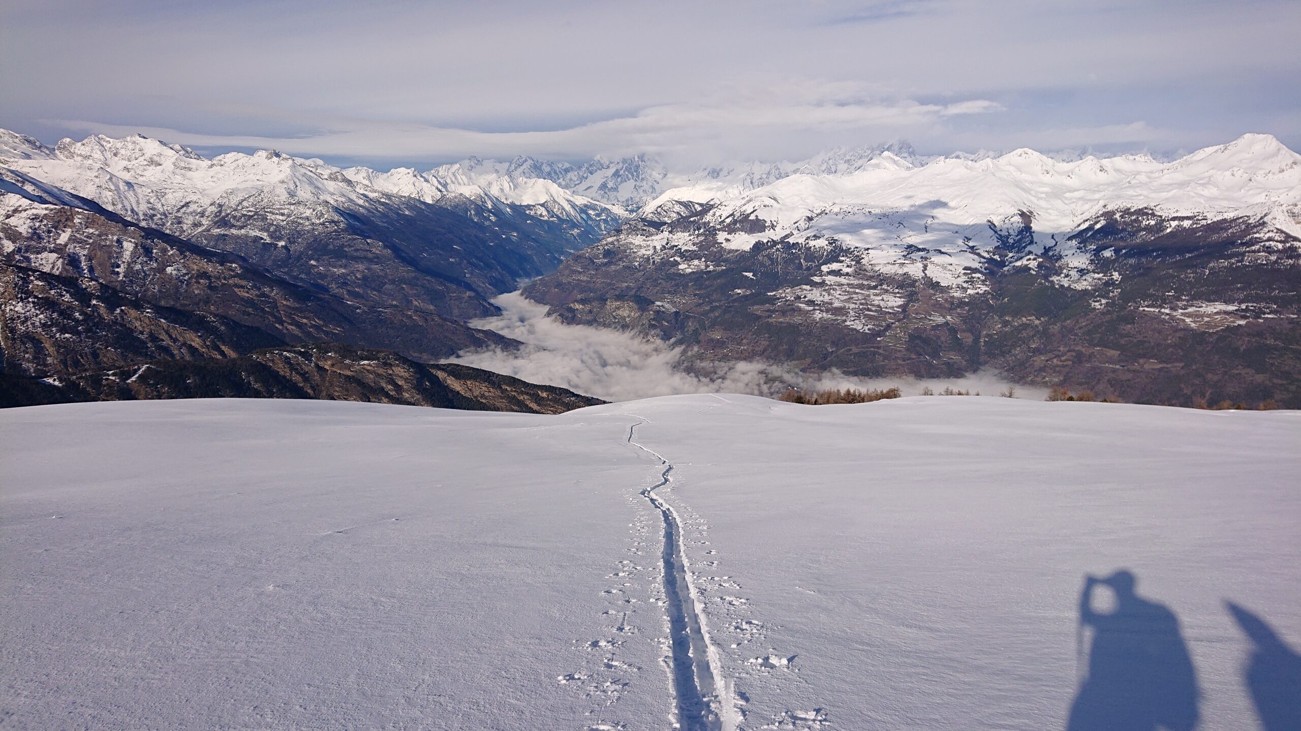 | rebatta-bousa | Si procede a piedi | rebatta-bousa | Quasi in vetta | rebatta-bousa | | rebatta-bousa | Si scende | rebatta-bousa | Parte iniziale | rebatta-bousa | Qui un po' "magro" | rebatta-bousa | | rebatta-bousa | | rebatta-bousa | La mucca di Siro | rebatta-bousa | S'intravede il sole | rebatta-bousa | Quota 2200, siamo sopra le nuvole | rebatta-bousa | I dossi da risalire, quasi privi di neve. | rebatta-bousa | Sulla cresta verso la Chaligne | rebatta-bousa | La cresta per arrivare in vetta, quasi priva di neve. | rebatta-bousa | Cresta pianeggiante, oggi.