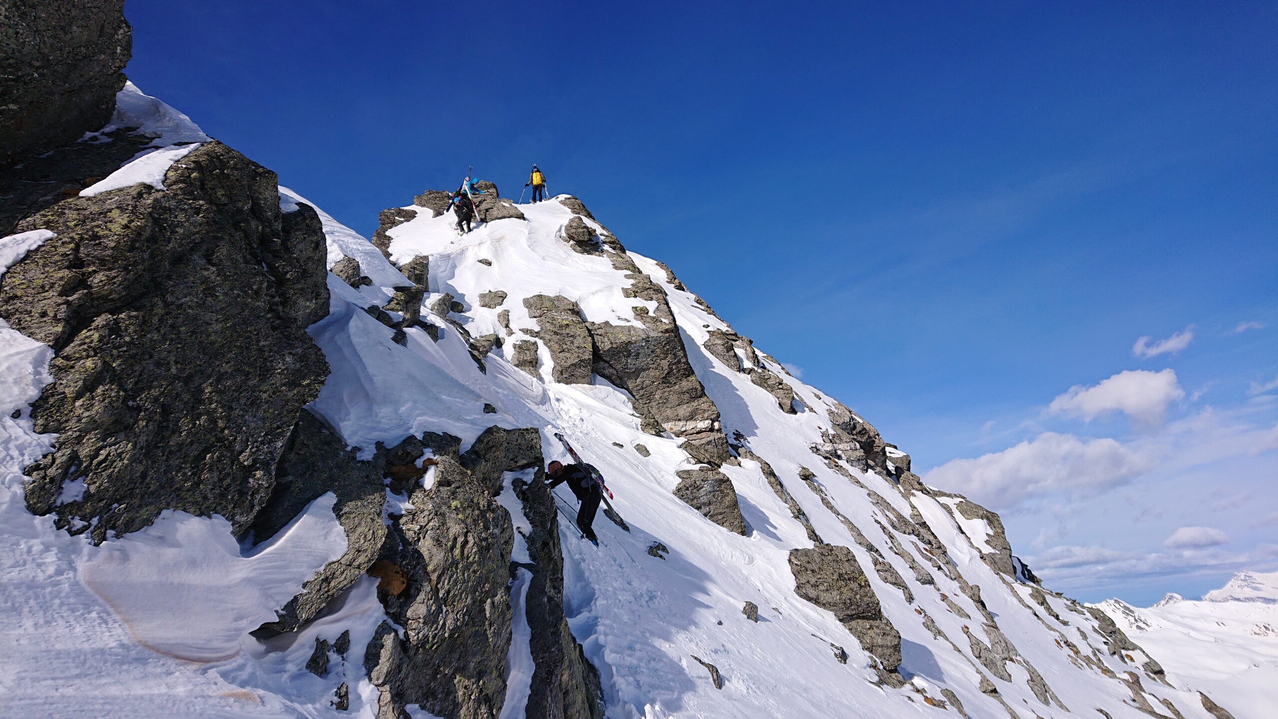| rebatta-bousa | In vetta | rebatta-bousa | La linea di discesa | rebatta-bousa | Sulla nord, bella neve | rebatta-bousa | 20 metri sotto la vetta si calzano gli sci | rebatta-bousa | Parte alta parete | rebatta-bousa | Parte bassa, neve molto bella | rebatta-bousa | | rebatta-bousa | | rebatta-bousa | Si risale al colle di Vioù | rebatta-bousa | Non poteva mancare la Becca di Vioù | rebatta-bousa | Discesa dal colle di Vioù | rebatta-bousa | Pare impossibile ma abbiano trovato una linea continua di neve da sciare. | rebatta-bousa | Risalendo le piste deserte | rebatta-bousa | Sullo sfondo il Corno del Camoscio | rebatta-bousa | In vetta al Corno del Camoscio