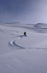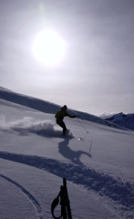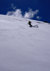 | rebatta-bousa | Si parte così dal piazzale. | rebatta-bousa | Il canale stretto con poca neve | rebatta-bousa | Sulla parte superiore del pendio | rebatta-bousa | In vetta | rebatta-bousa | Bella farina | rebatta-bousa | Rosso salita, blu discesa.