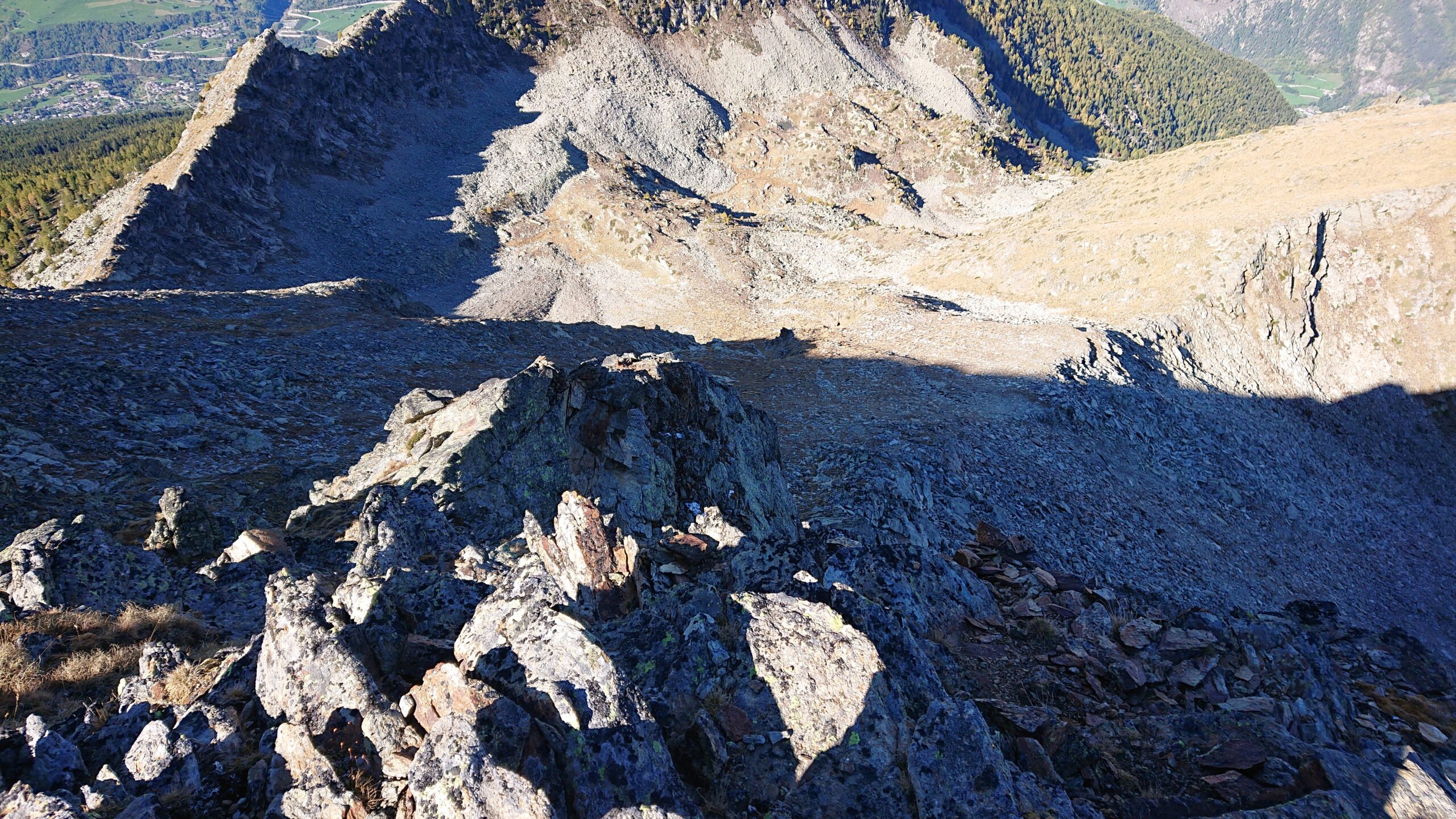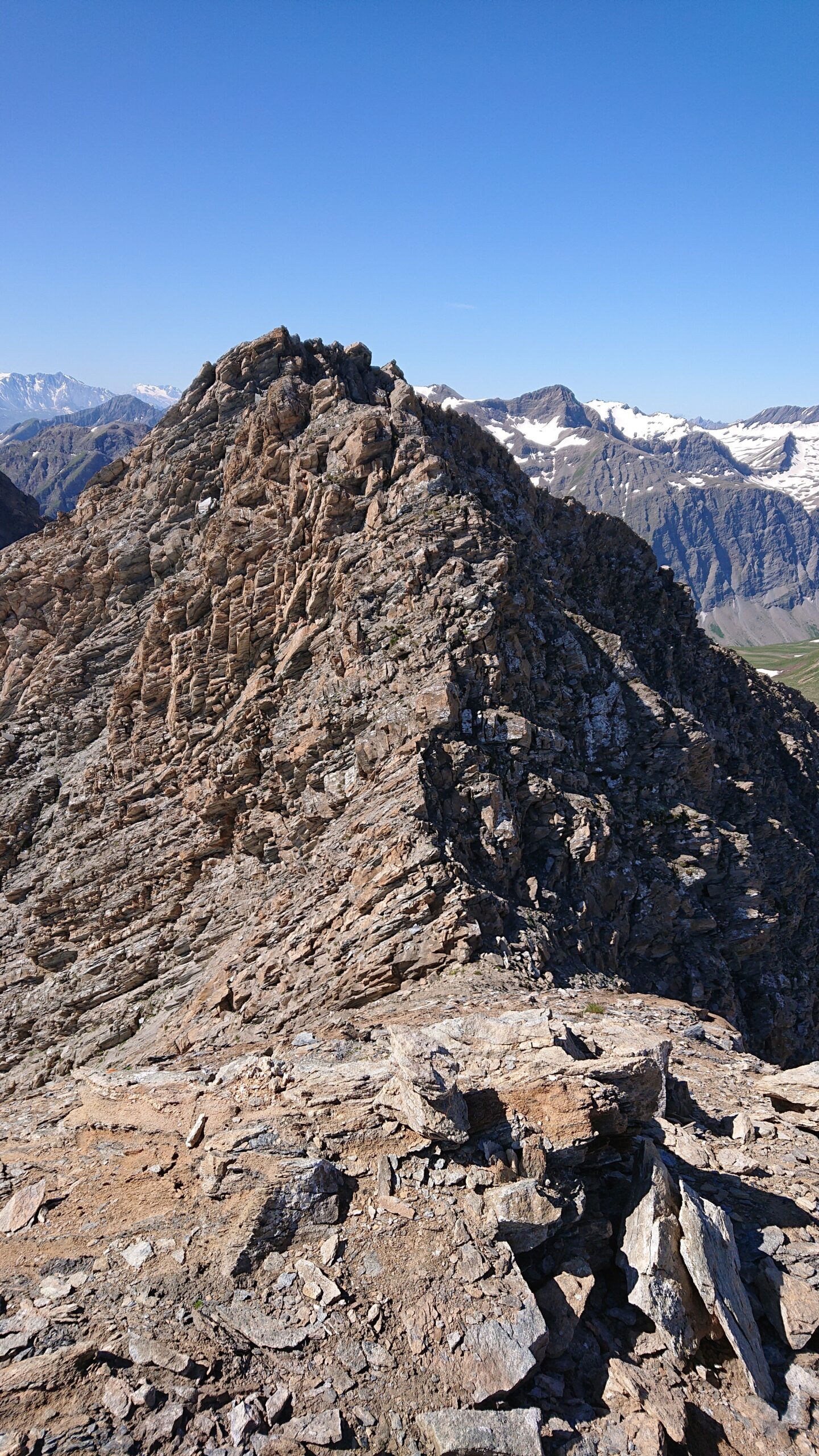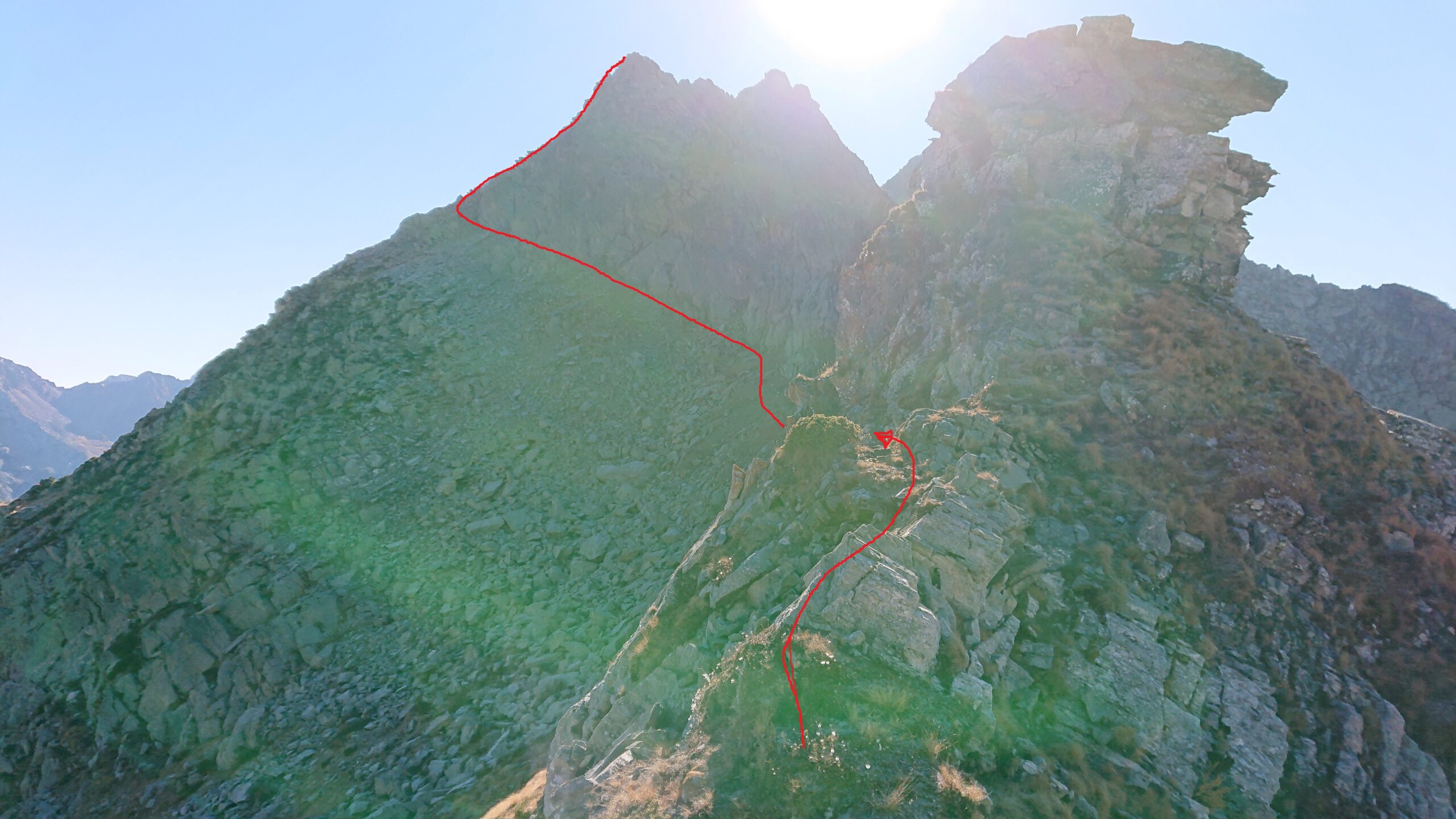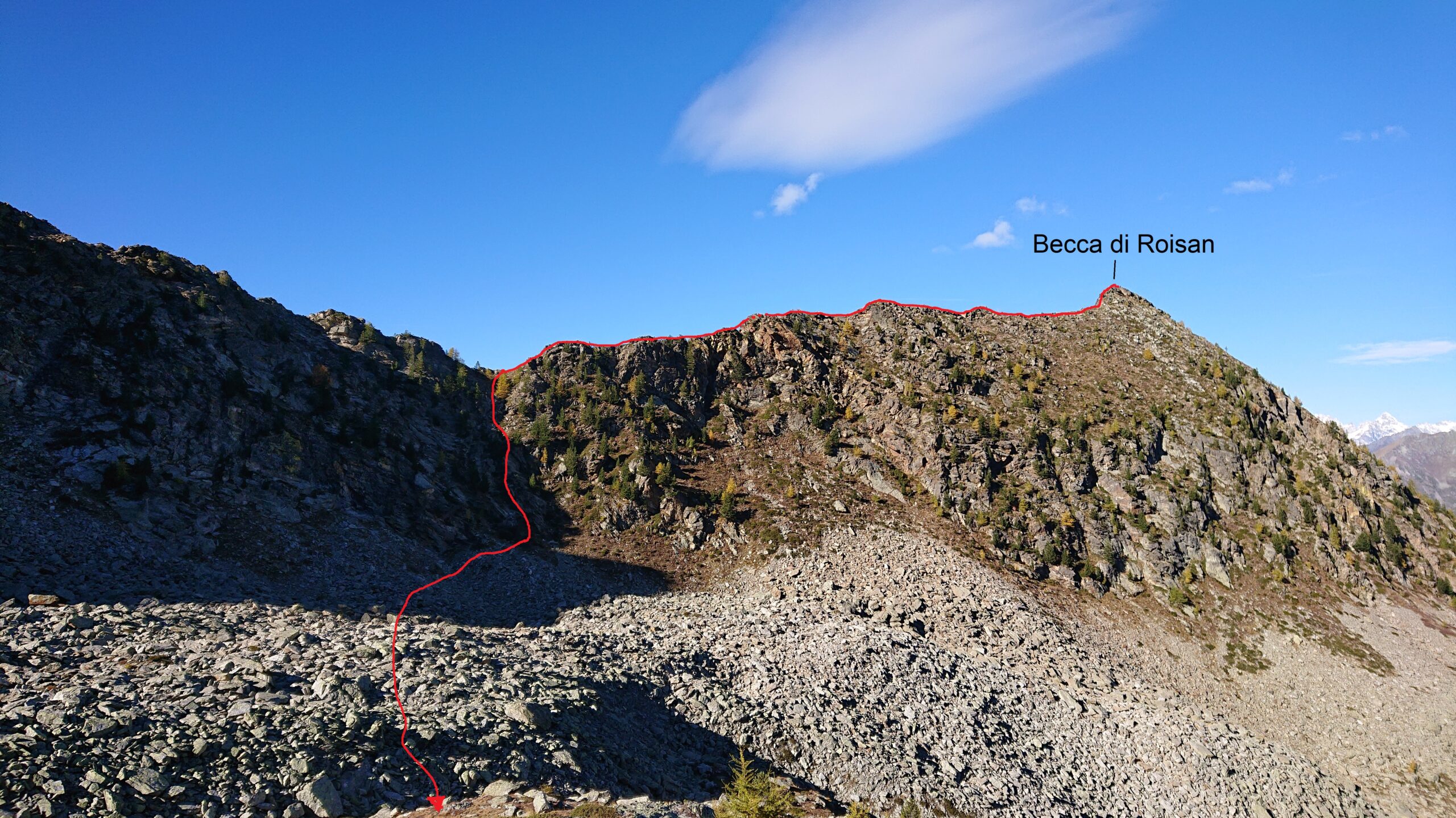 | rebatta-bousa | In rosso la parte finale della salita. In giallo la cresta NO della Becca di Vioù | rebatta-bousa | Il percorso per scendere nel vallone di Val Frèide | rebatta-bousa | Omino di vetta | rebatta-bousa | Sulla cresta NO della Becca di Vioù | rebatta-bousa | Becca di Vioù