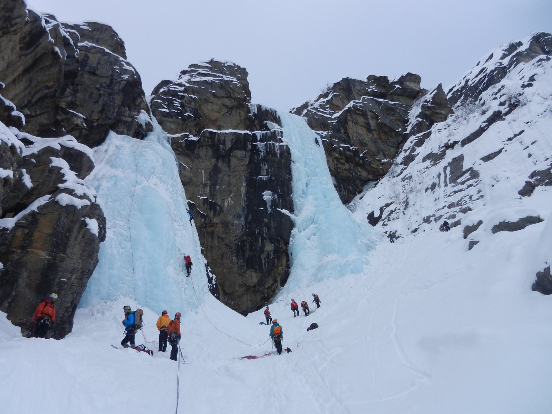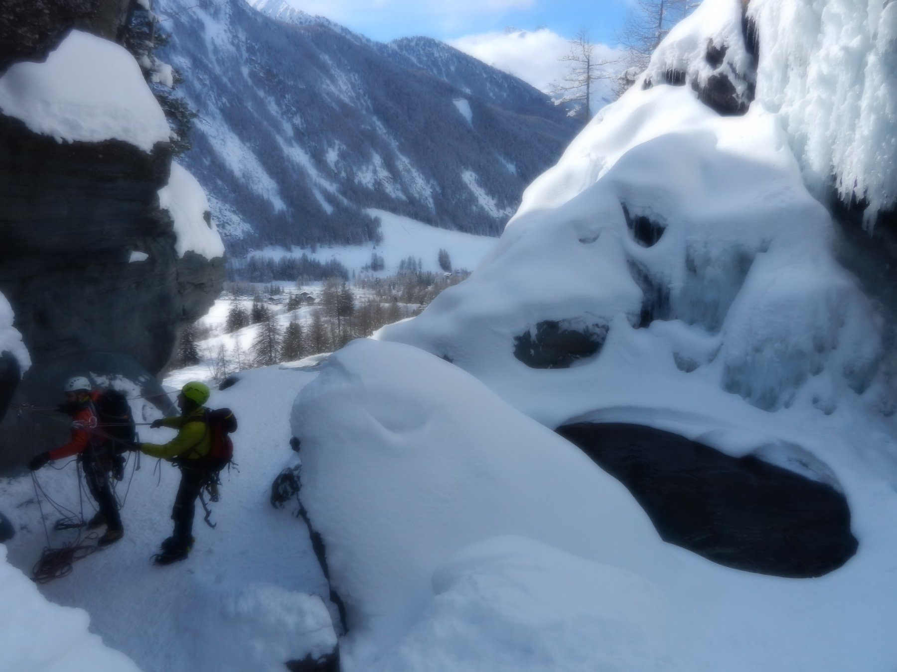 | red-fab | Il primo salto | red-fab | Il tratto sopra il terzo tiro, dalla sosta su albero | red-fab | Il terzo tiro | red-fab | Secondo e terzo tiro visti dalla sosta alla fine di L1 | red-fab | La cascata dal sentiero di avvicinamento: primo e secondo tiro | red-fab | Primo tiro | red-fab | La cascata della nicchia e, in alto, la proboscide del quaternario