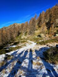 Il sentiero di andata, nel tratto che sulla mappa è valutato T3, non è particolarmente battuto ed evidente e presenta dei passaggi ripidi che, in…