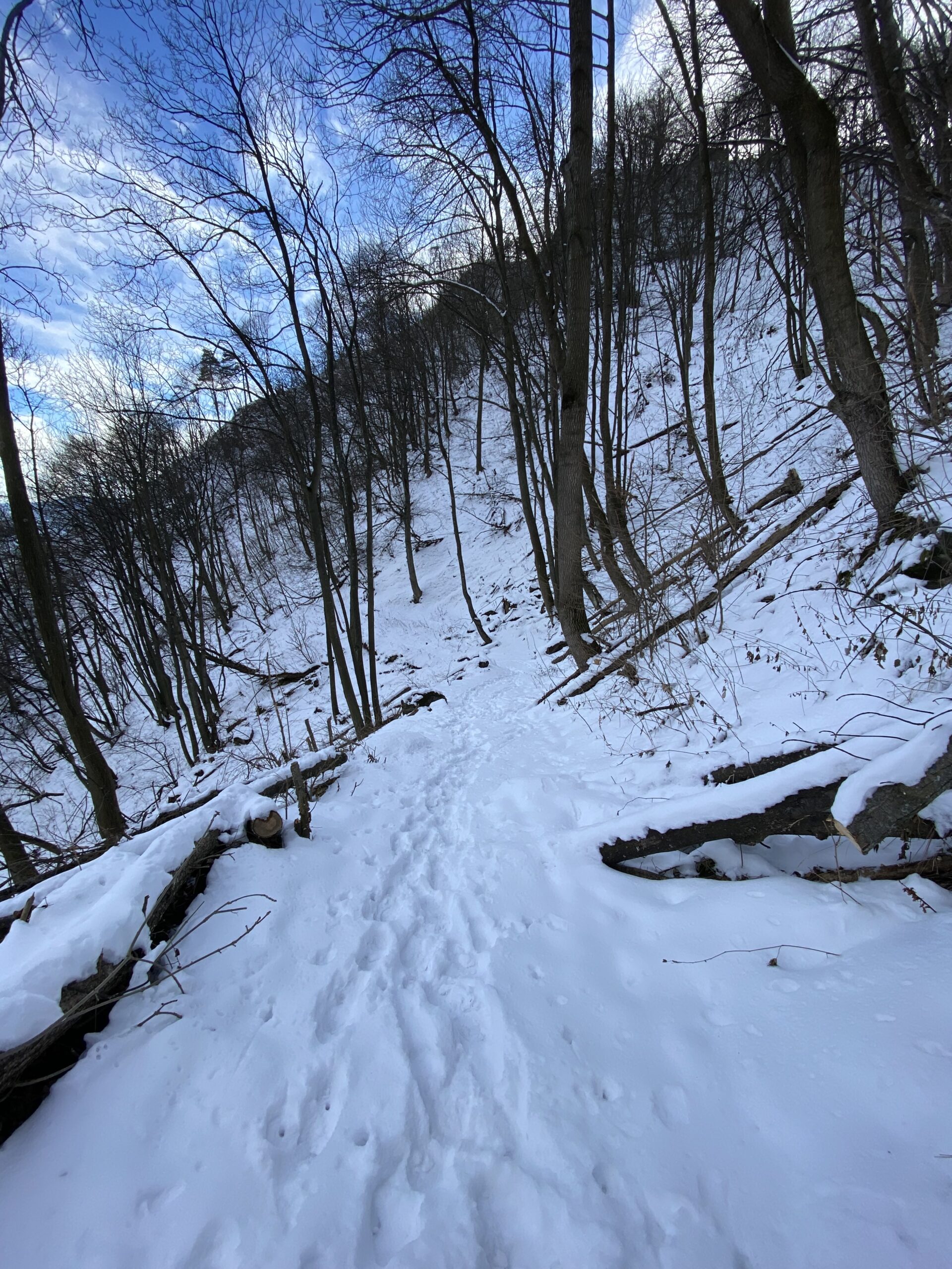 Da non sottovalutare la cresta, che di suo è almeno un T4, ma sporca di neve come è per ora, è ancora più difficoltosa.