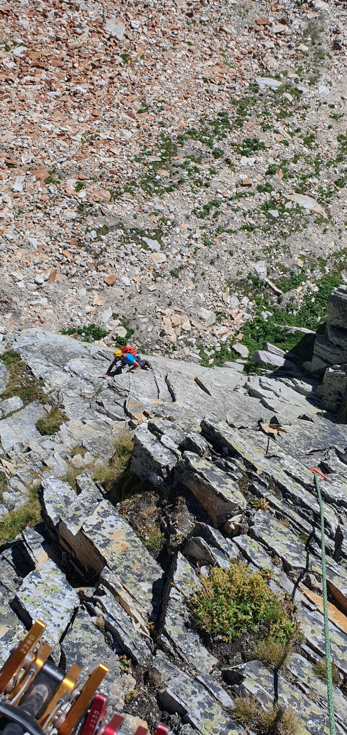 Gita molto didattica per chi vuole incrementare le proprie capacità alpinistiche . Non ci sono molti chiodi ma l itinerario è ovvio. Soste su anelloni ma buone…