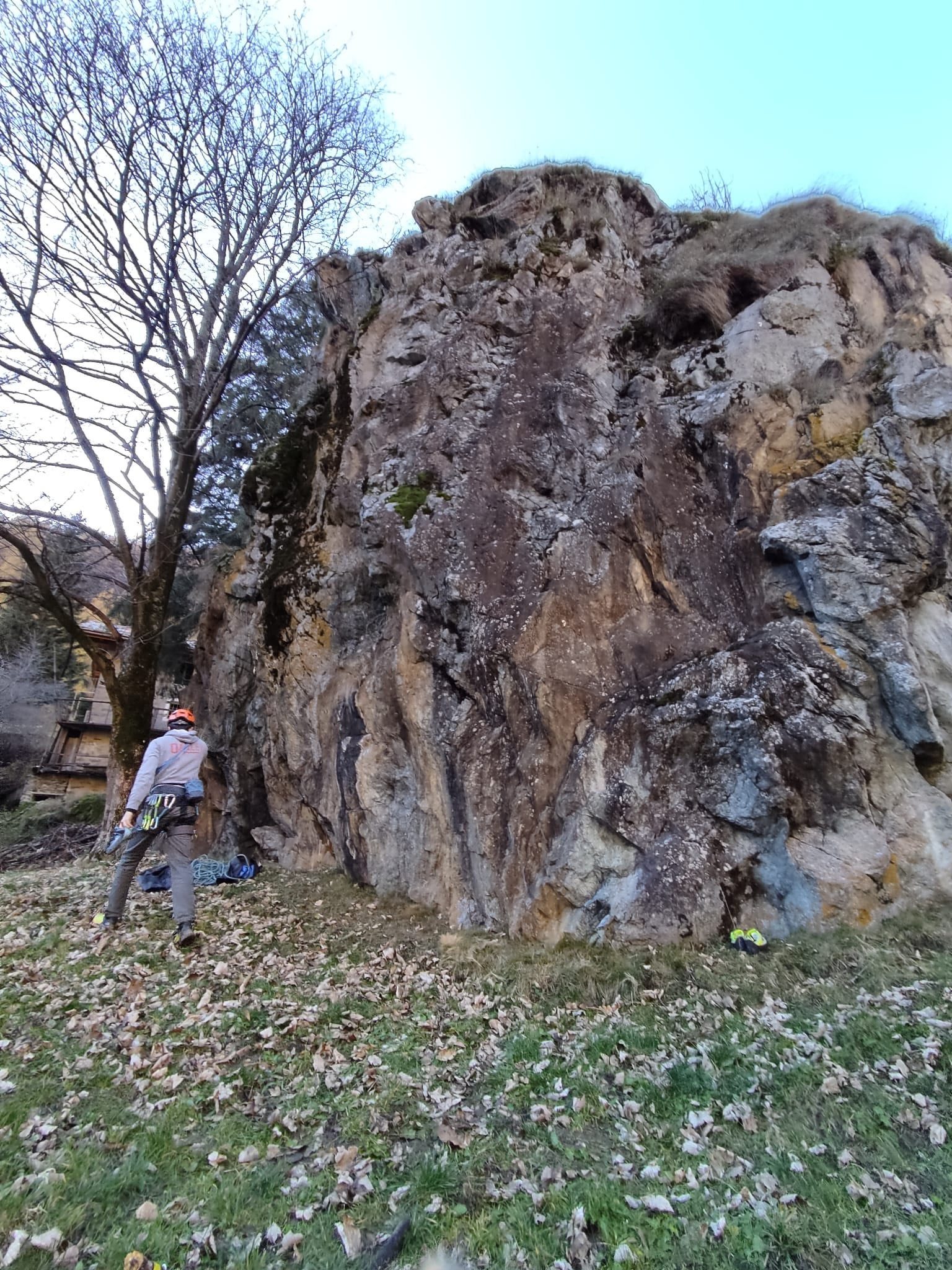 Arrampicato solo fino alla prima sosta dove c'è un cordino usurato che collega gli spit e due maglie rapide (su cui ci si può calare…