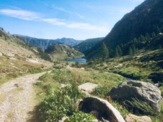 Cinque stelle nonostante la giornata variabile e le nuvole sul gruppo del Bianco. Bel sentiero a gradoni nei tratti più ripidi prima del lago di…