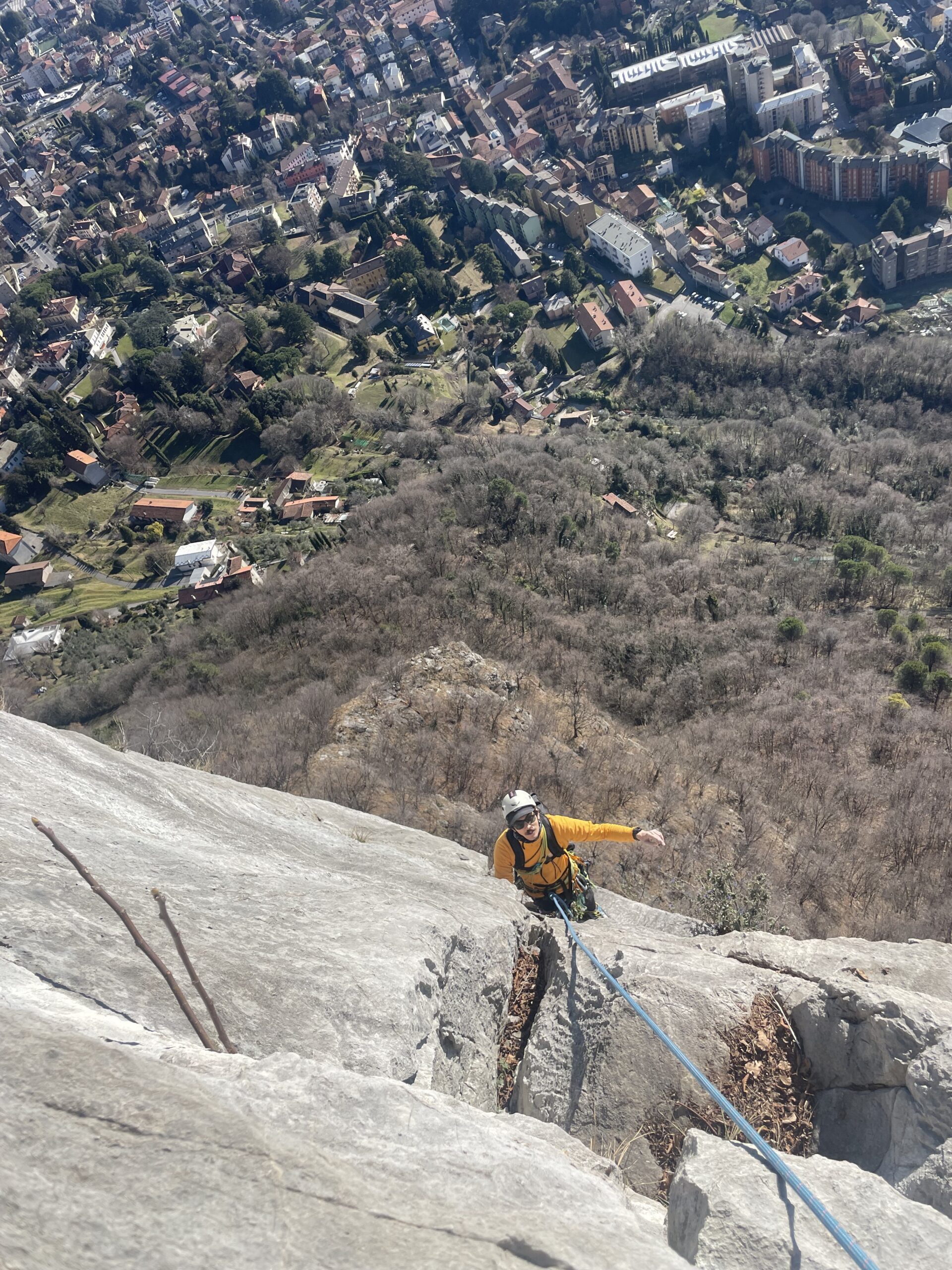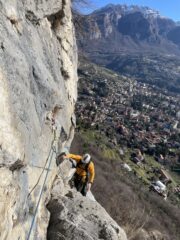 Via breve ma divertente, perfetta per le giornate invernali. Chiodatura sportiva, usato solo un friend nel quarto tiro. Un passo di 5c azzerabile sul…