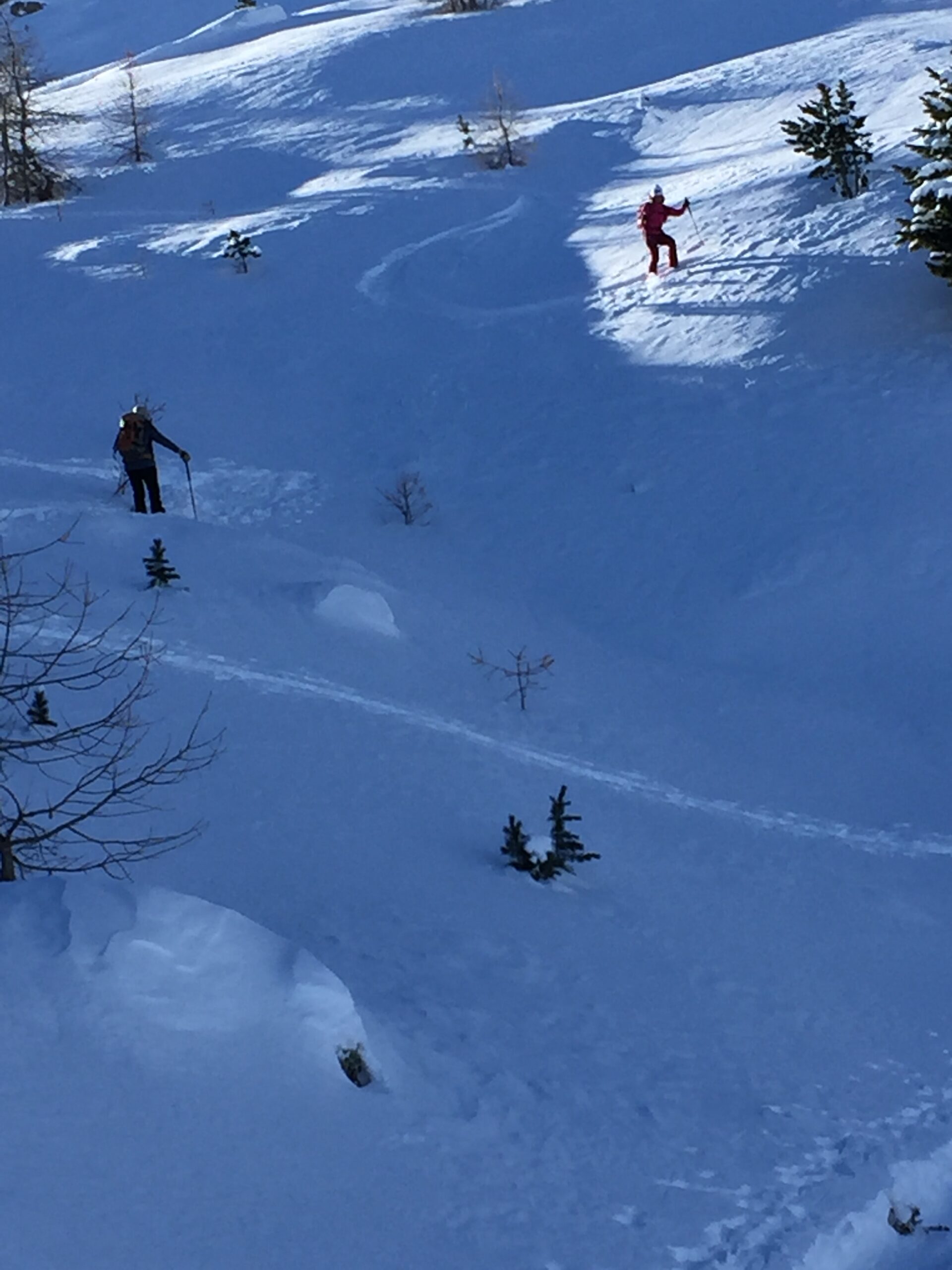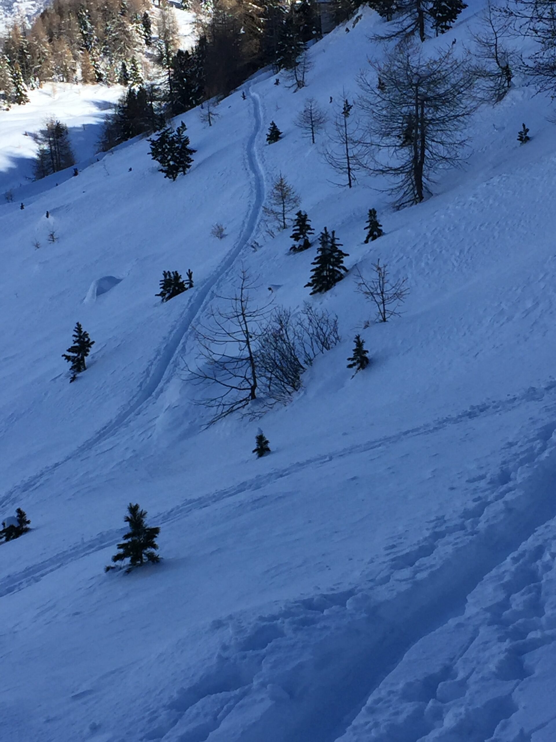 Buona sera a tutti. Ottima temperatura in valle. Scesi i premi 200 metri di dislivello su leggera crosta non portante. Poi 10 cm. di neve fresca posata…