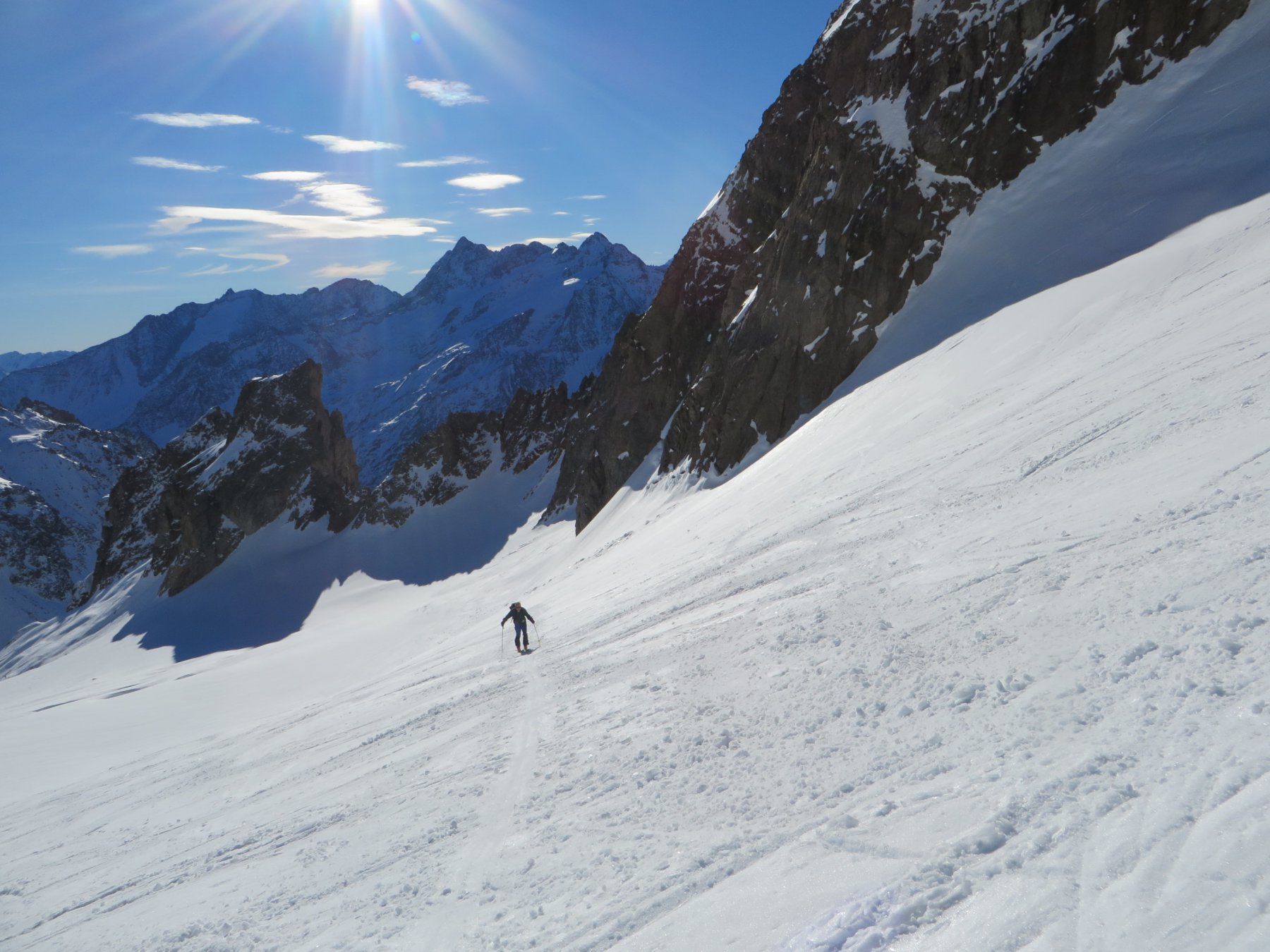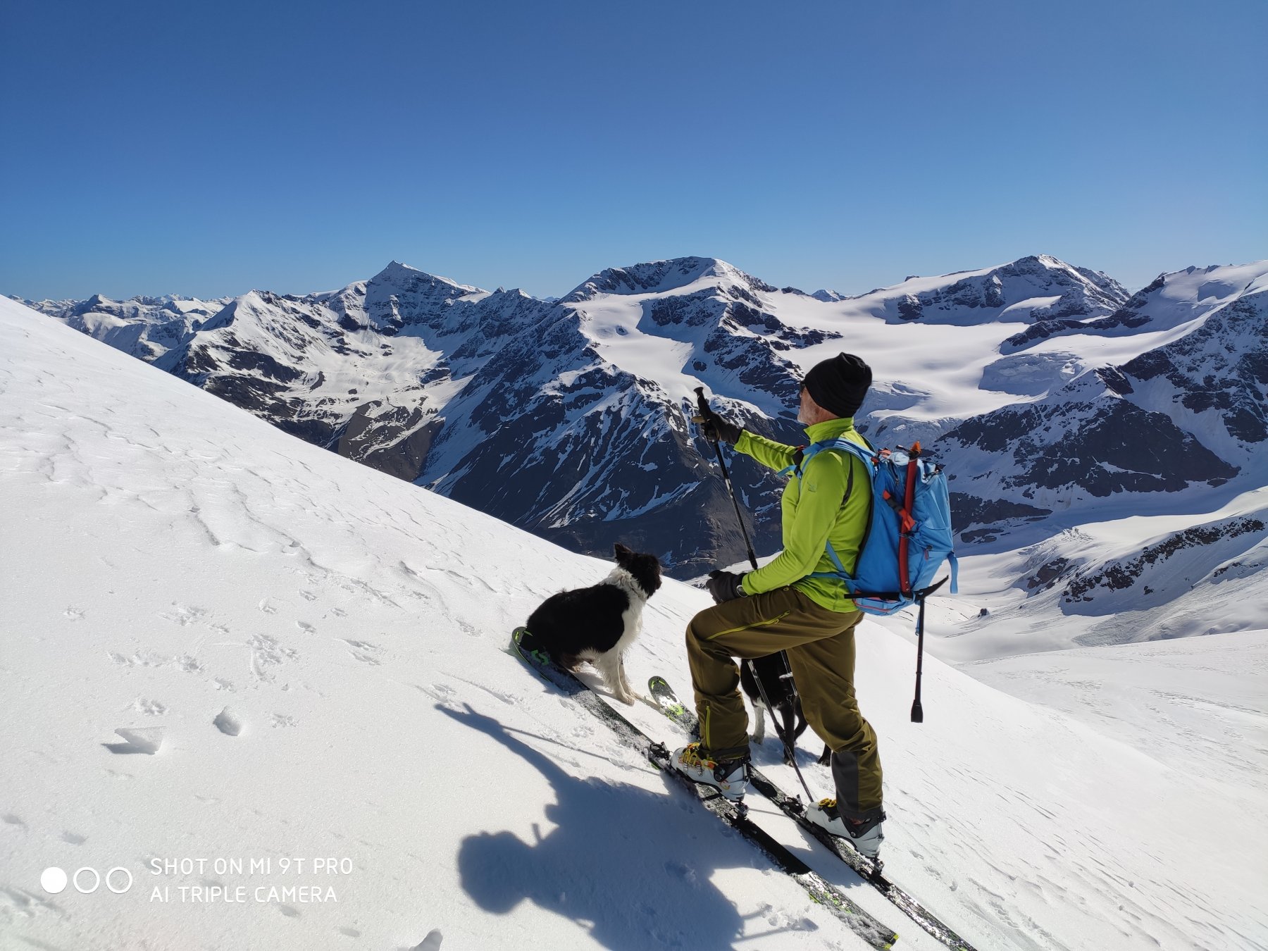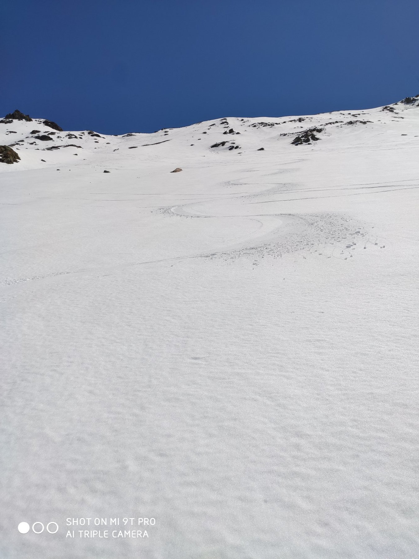 15' portage poi neve continua bella compatta con i 2° alla partenza alle 6.30; rampante sul Cornetto e sul salto ripido della vedretta. In discesa…