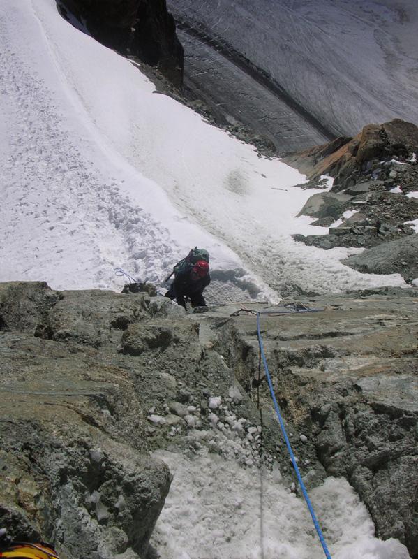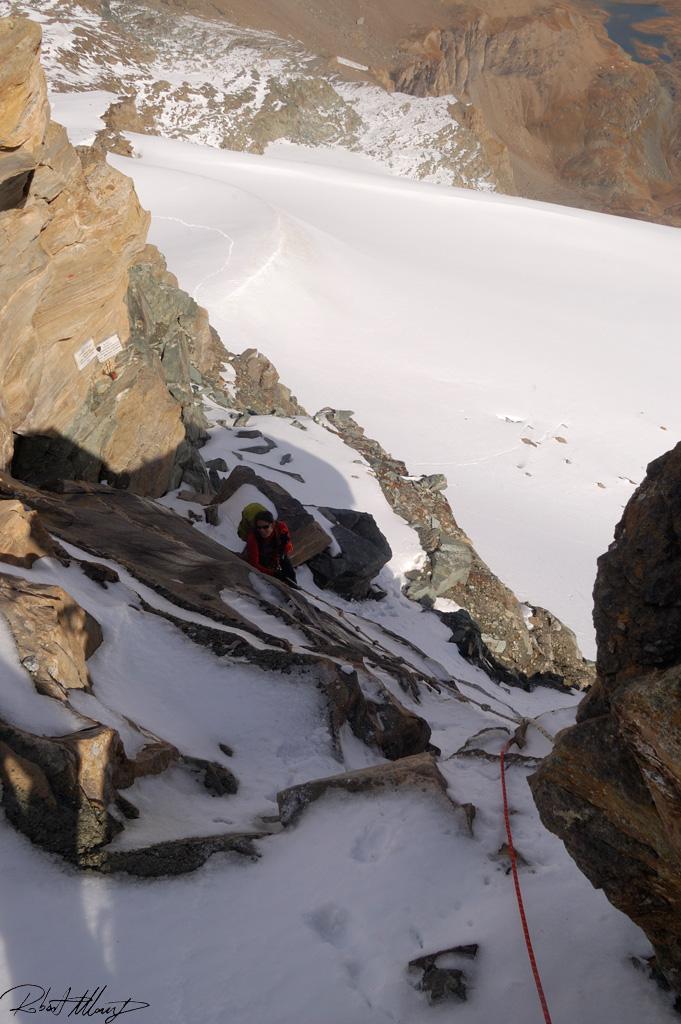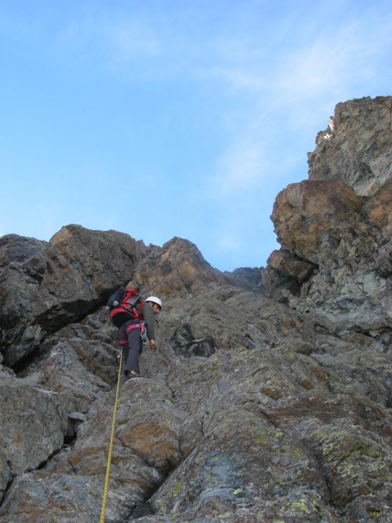 | roby4061 | verso la selletta 3470 | roby4061 | la cresta | roby4061 | la parte più impegnativa della cresta | roby4061 | verso il tratto roccioso | roby4061 | affollamento | roby4061 | il passaggio più impegnativo, in spaccata | roby4061 | primo tiro visto dall'alto | roby4061 | secondo tiro, misto | roby4061 | discesa per la normale | roby4061 | passaggio di crepaccio a quota 3600 sulla normale | roby4061 | la seconda metà della hohlaubgrat vista dal metro alpin