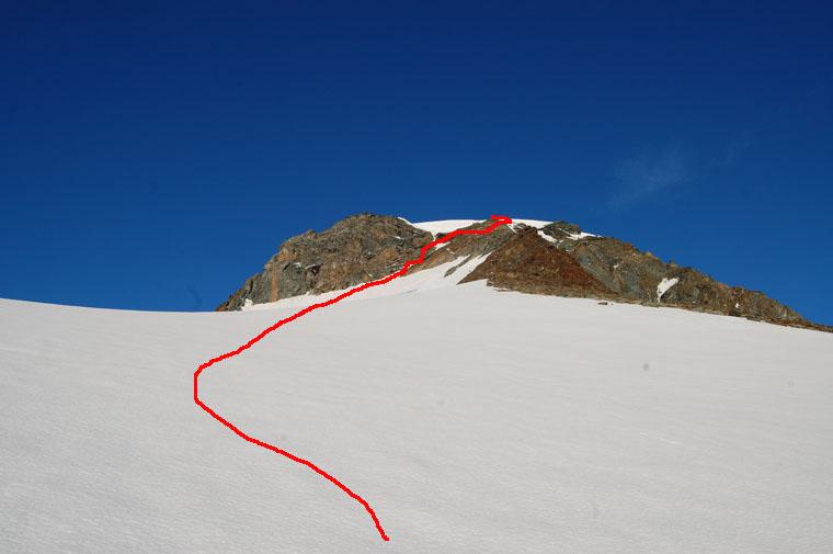 | roby4061 | discesa per la via normale | roby4061 | inizio ghiacciaio | roby4061 | percorso per il passaggio chiave | roby4061 | percorso seguito in discesa | roby4061 | muretto finale | roby4061 | posa della targhetta | roby4061 | altimetria www.salite.ch | roby4061 | sentiero dai chiappili | roby4061 | bivio del 325, ora ripulito | roby4061 | dal testarebbo verso l'itinerario di salita | roby4061 | cresta finale | roby4061 | boscaglia da machete | roby4061 | il piano dell'alpe di lenz | roby4061 | a monte dell'alpe del grifone | roby4061 | cresta finale