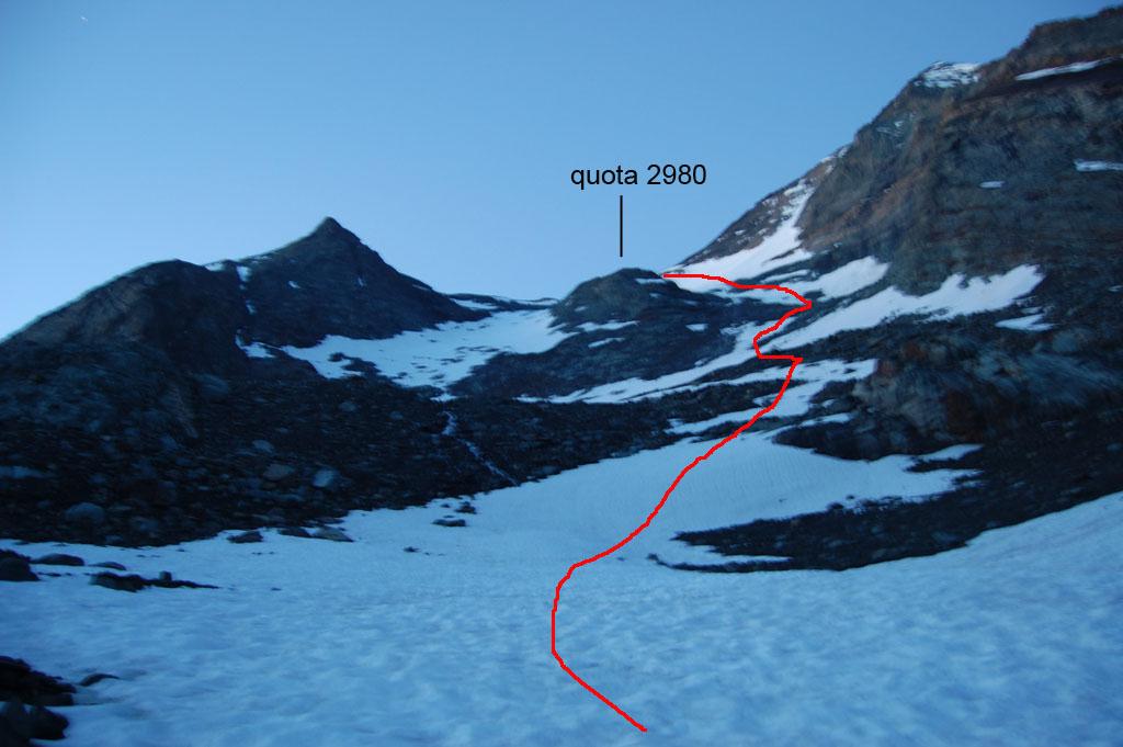| roby4061 | in discesa sul vallone del Regondi | roby4061 | in discesa, quota 2700 | roby4061 | | roby4061 | imbocco del canale che porta al piano | roby4061 | traverso | roby4061 | da sotto | roby4061 | l'altro possibile canale di discesa (35°) | roby4061 | ultimo canalino, sotto c'è il sentiero