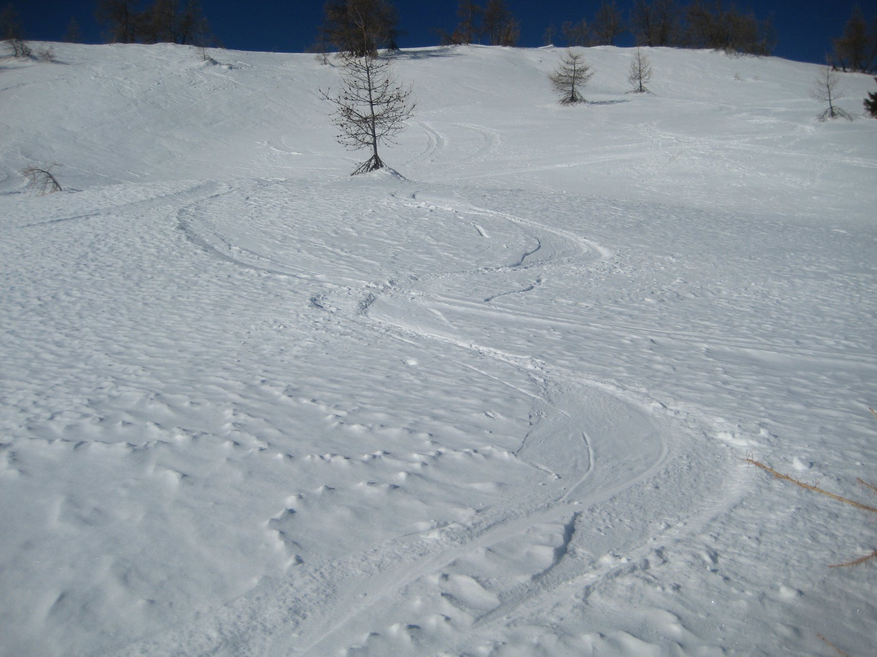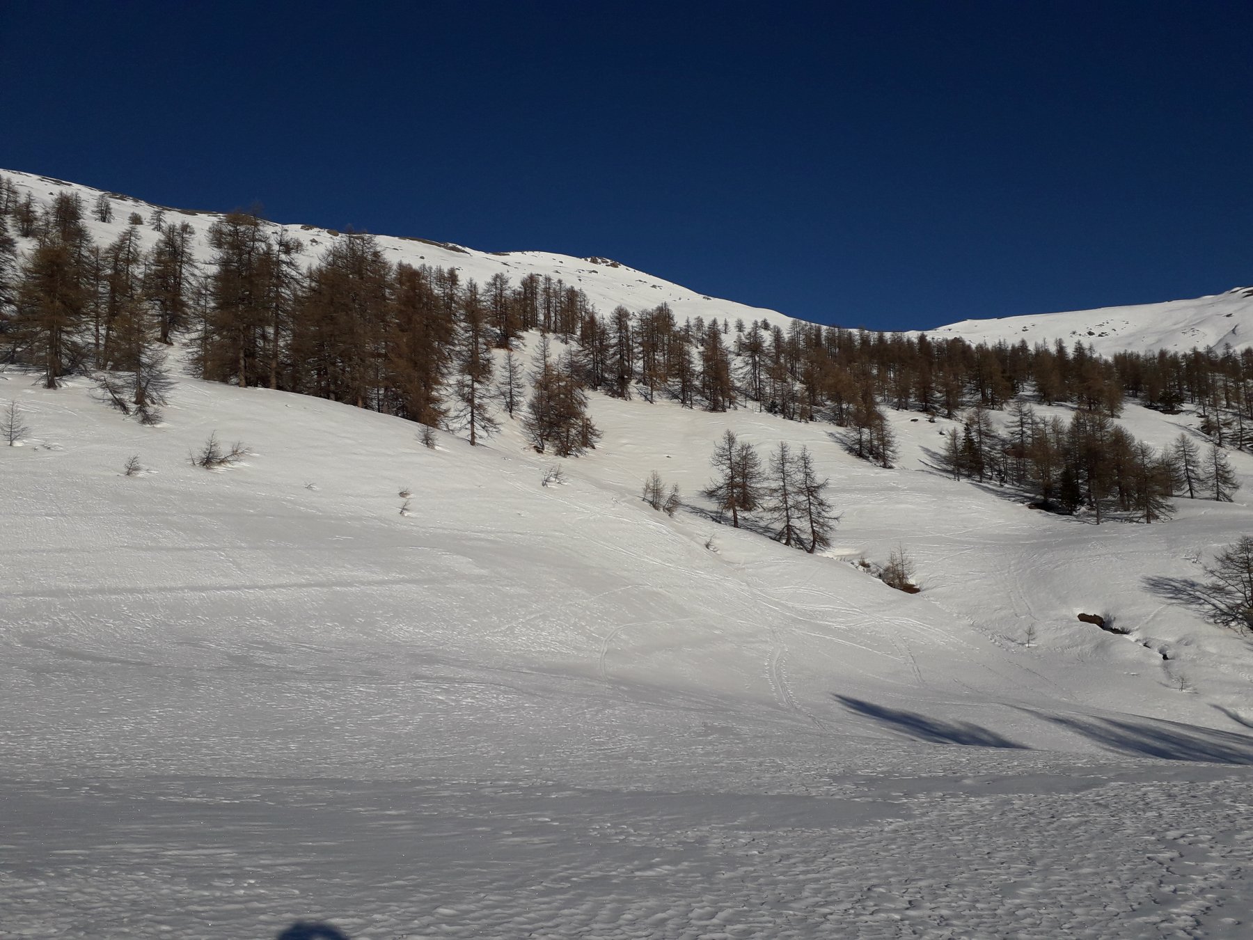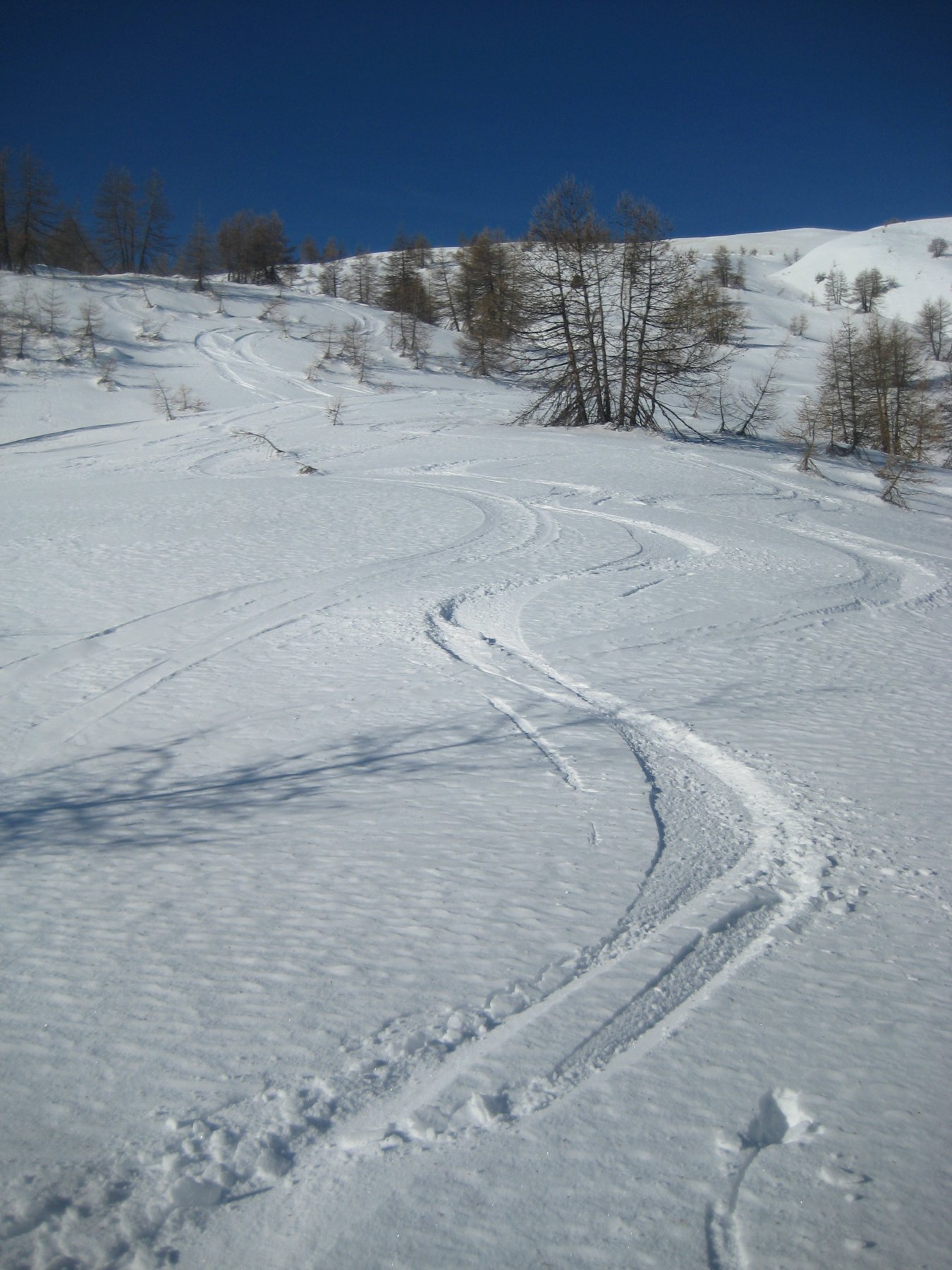 Partito da Grand puy. In 15 giorni la neve ha preso una bella batosta sotto 1900 m. 10 min di portage, attenti al cane…
