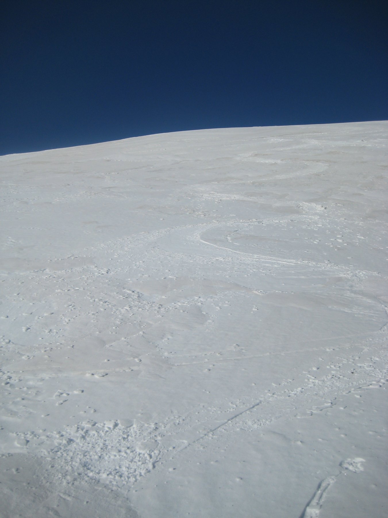 Salita veloce, discesa cominciata alle 10.50. Come prevedibile in questa stagione, il manto nevoso non è ancora del tutto trasformato e si trova un po'…