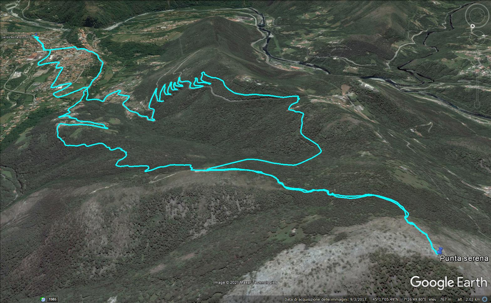 | roby58 | tratto di sentiero a sant'ignazio (cartello CAI) | roby58 | rampa sterrata dopo la miniera di talco | roby58 | tratto in salita in bosco a 25 minuti dalla vetta | roby58 | punta Serena | roby58 | tratto downhill | roby58 | deviazione da sterrata in tratto downhill | roby58 | tratto downhill | roby58 | traccia gps in google earth