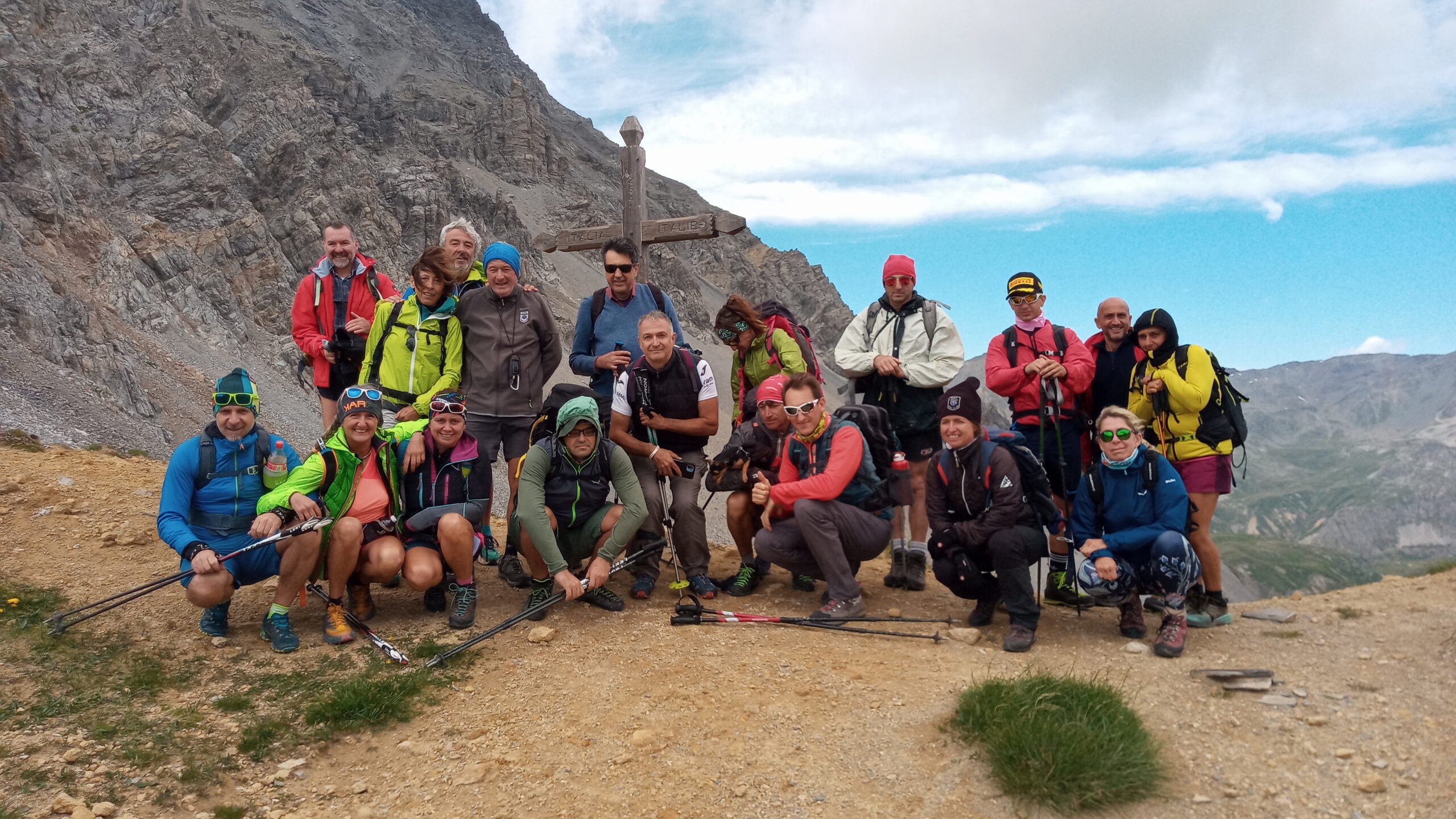| roby58 | salita nel tratto mediano | roby58 | | roby58 | signal du Col Trois Freres Mineurs | roby58 | i 3 speroni rocciosi che danno origine al nome del colle | roby58 | tutti al colle | roby58 | traccia in google earth con anello del percorso.