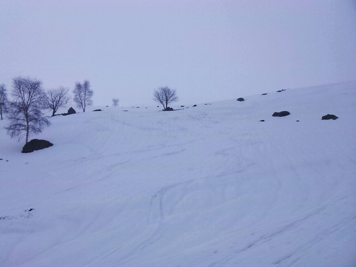ho appena dato un'occhiata alle altre gite in zona, ho visto condizioni soddisfacenti un po' dappertutto, noi purtroppo abbiamo sbagliato versante di discesa, siamo scesi…