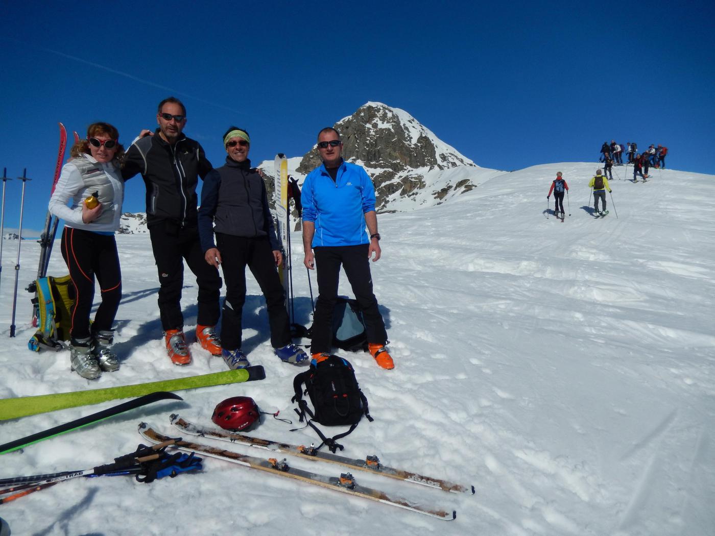 Oggi almeno tre gite Cai, conseguenza!!!! circa 100 skialper sul percorso, punta affollatissima. I circa 40 cm di neve fresca non sono bastati a coprire le…