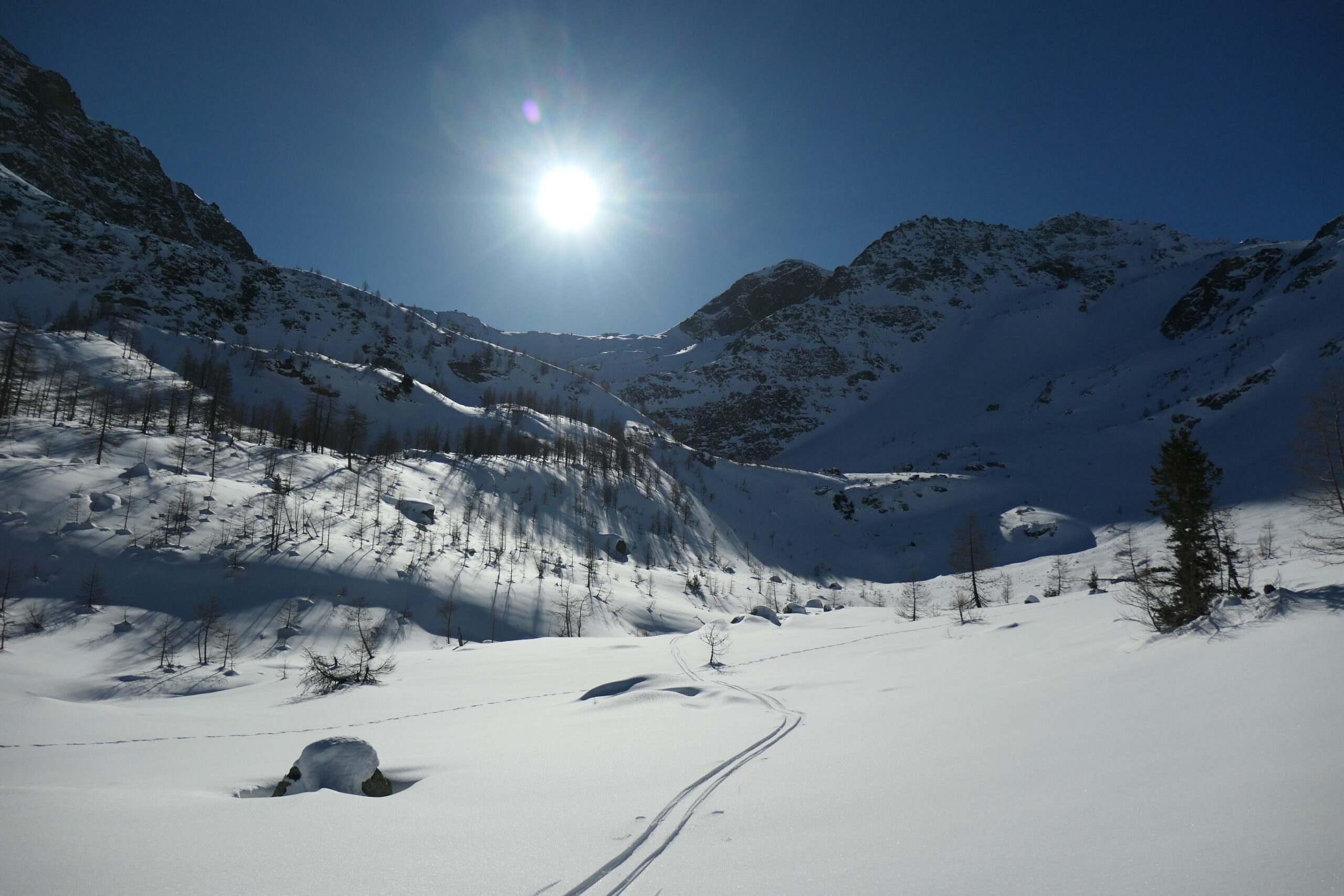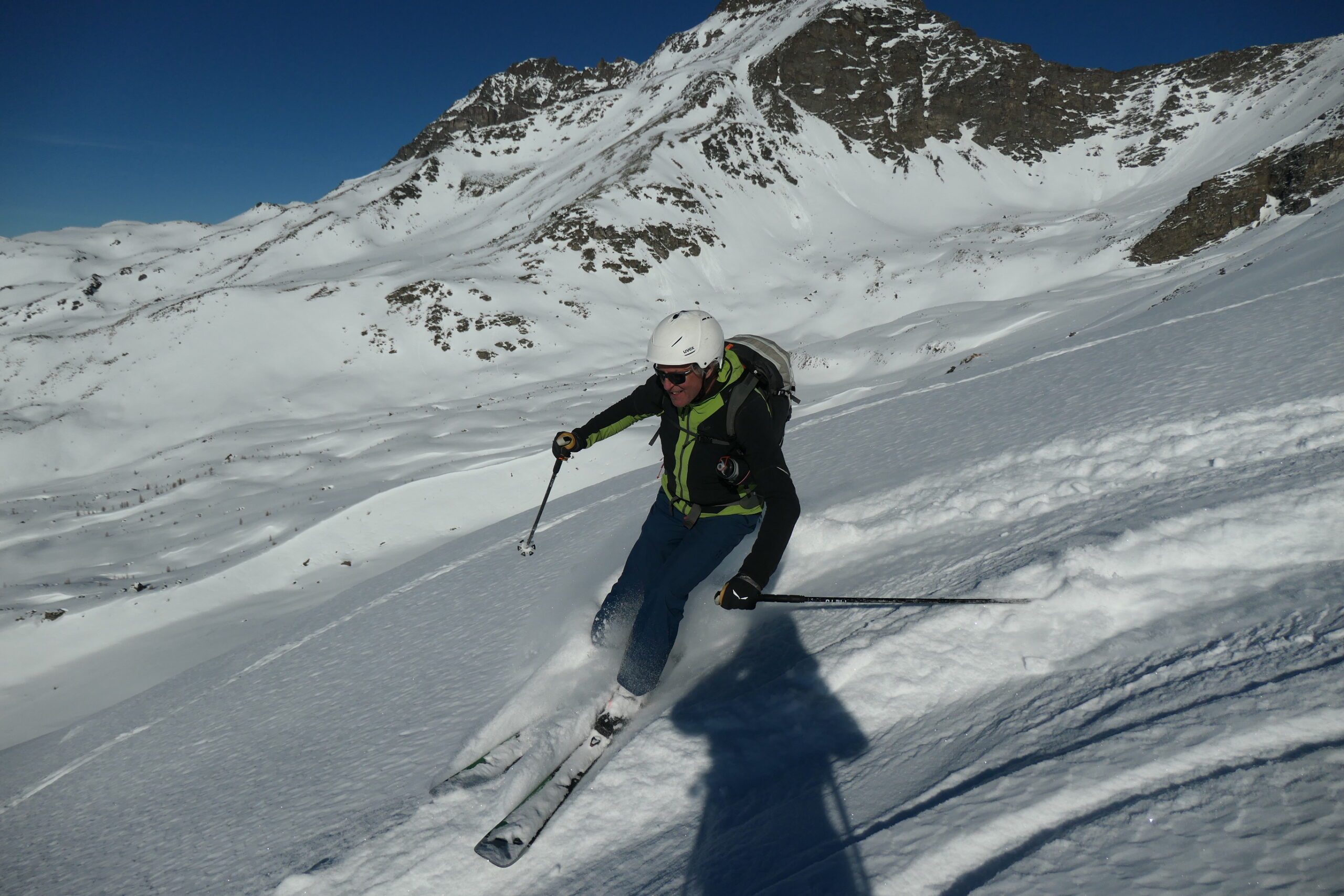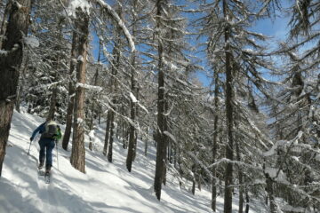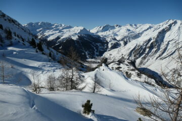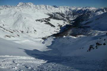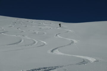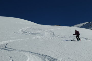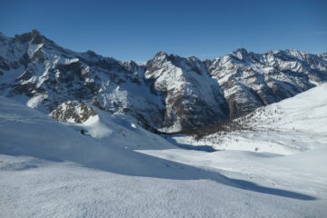 Saliti un po' sopra il colle, fino a quota 2650 m ca. I° discesa nel vallone del Entrelor per pendii intonsi, ancora senza tracce (andando…