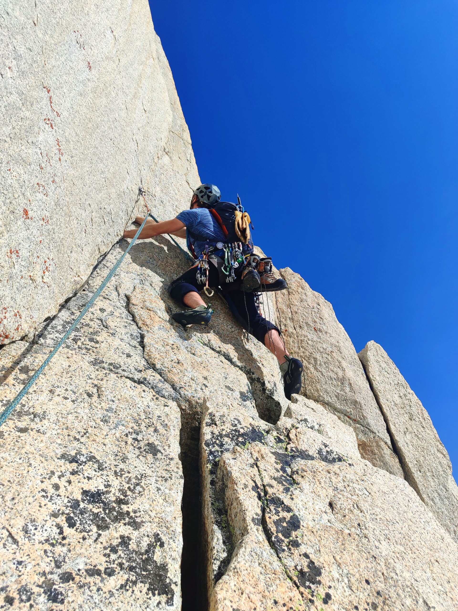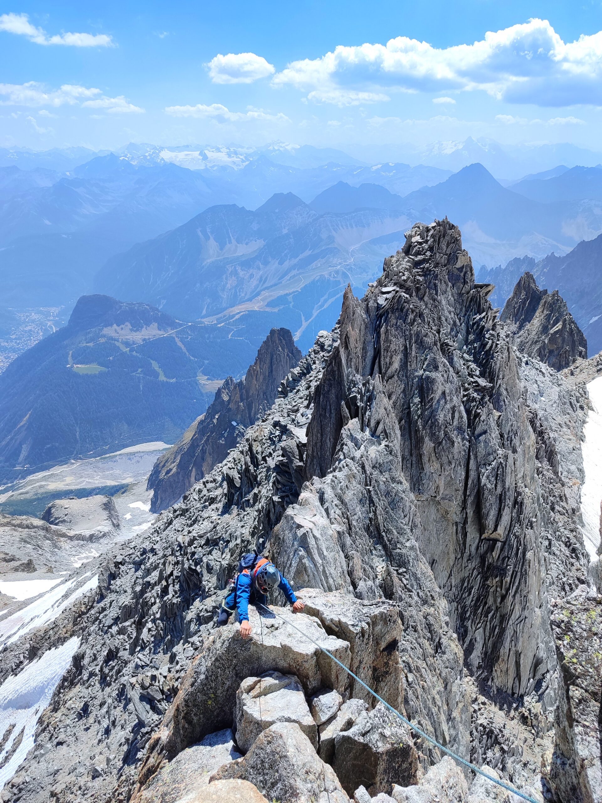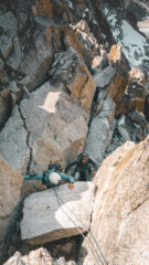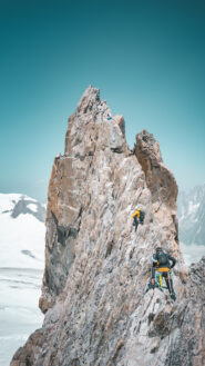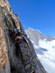Cresta davvero bella, roccia pazzesca, tutta asciutta tranne un breve tratto con neve dove non servono ramponi, incontrato solo due cordate in una giornata spettacolare!…