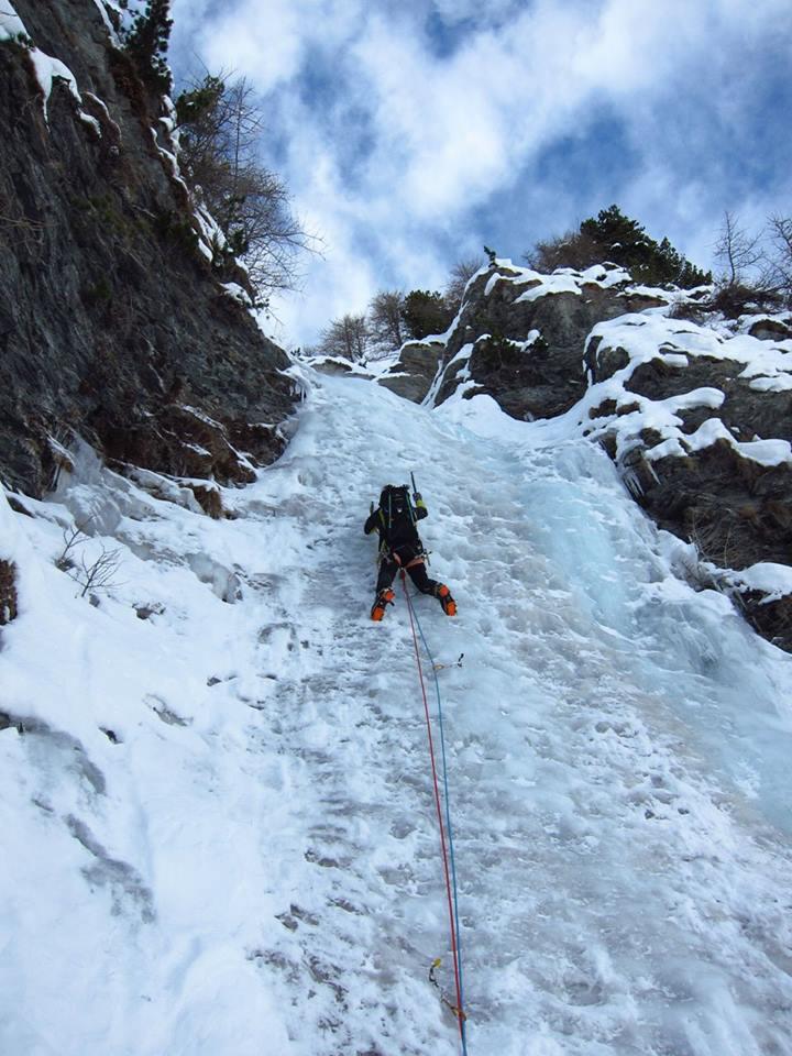 Primo tiro breve (4-5m) saltino di ghiaccio abbastanza buono, solitamente affrontato o dal lato destro o da quello sinistro (al centro più verticale, ma con…