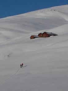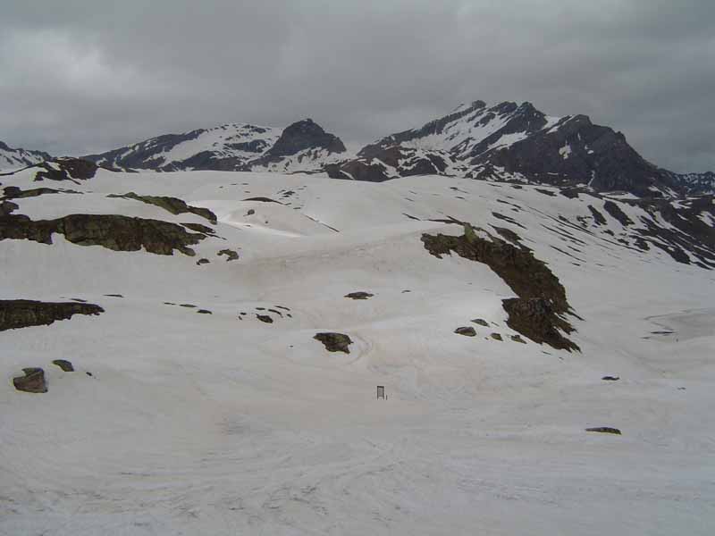 arrivati solo al sirwoltesattel (2620 m) per il cattivo tempo, portati gli sci solo per circa 300 m dopo l'attraversamento del fiume