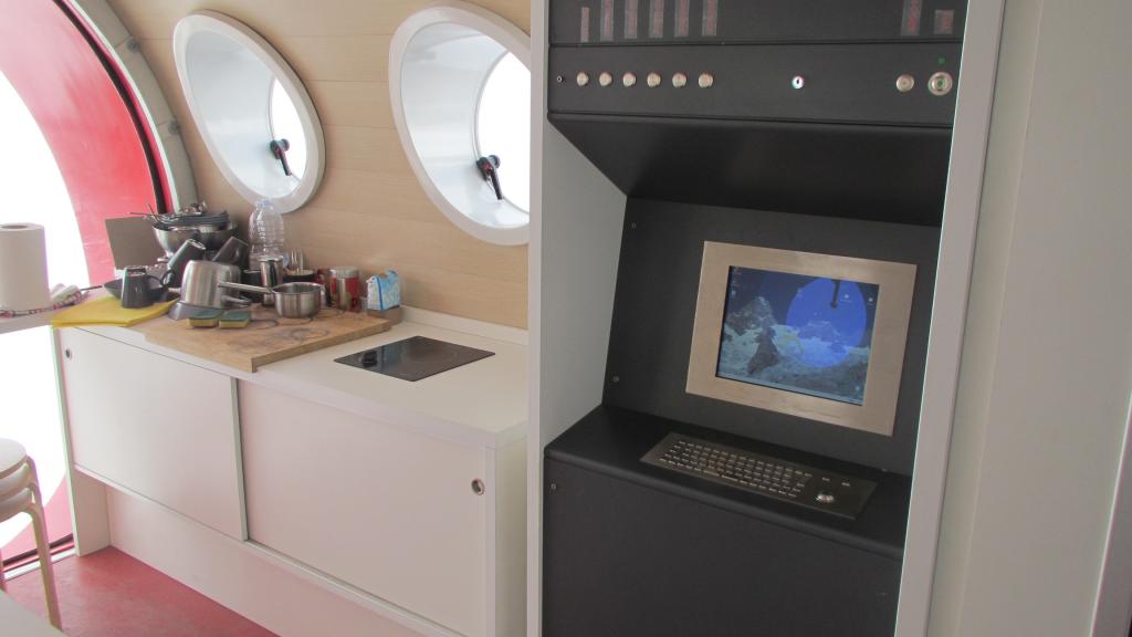 | schen | Il bivacco a dx e la parete SE delle Petites Jorasses a sx | schen | La nuova scaletta | schen | Dal Biv. la parete Est delle Grandes Jorasses | schen | Cucina hi tech e computer! | schen | zona notte | schen | sala da pranzo con vetrata panoramica