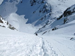 Gita tirata per la disponibilità della sola domenica: portage bello lunghetto per circa 600m di dislivello, poi dal vallone superiore neve continua, perfettamente trasformata e…