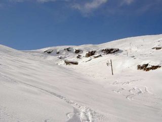 Ottime condizioni della via di dx. Terminale aperta, ma superabile issandosi sugli attrezzi. Neve dura fino a metà (di conserva); ghiaccio plastico di qui fino…