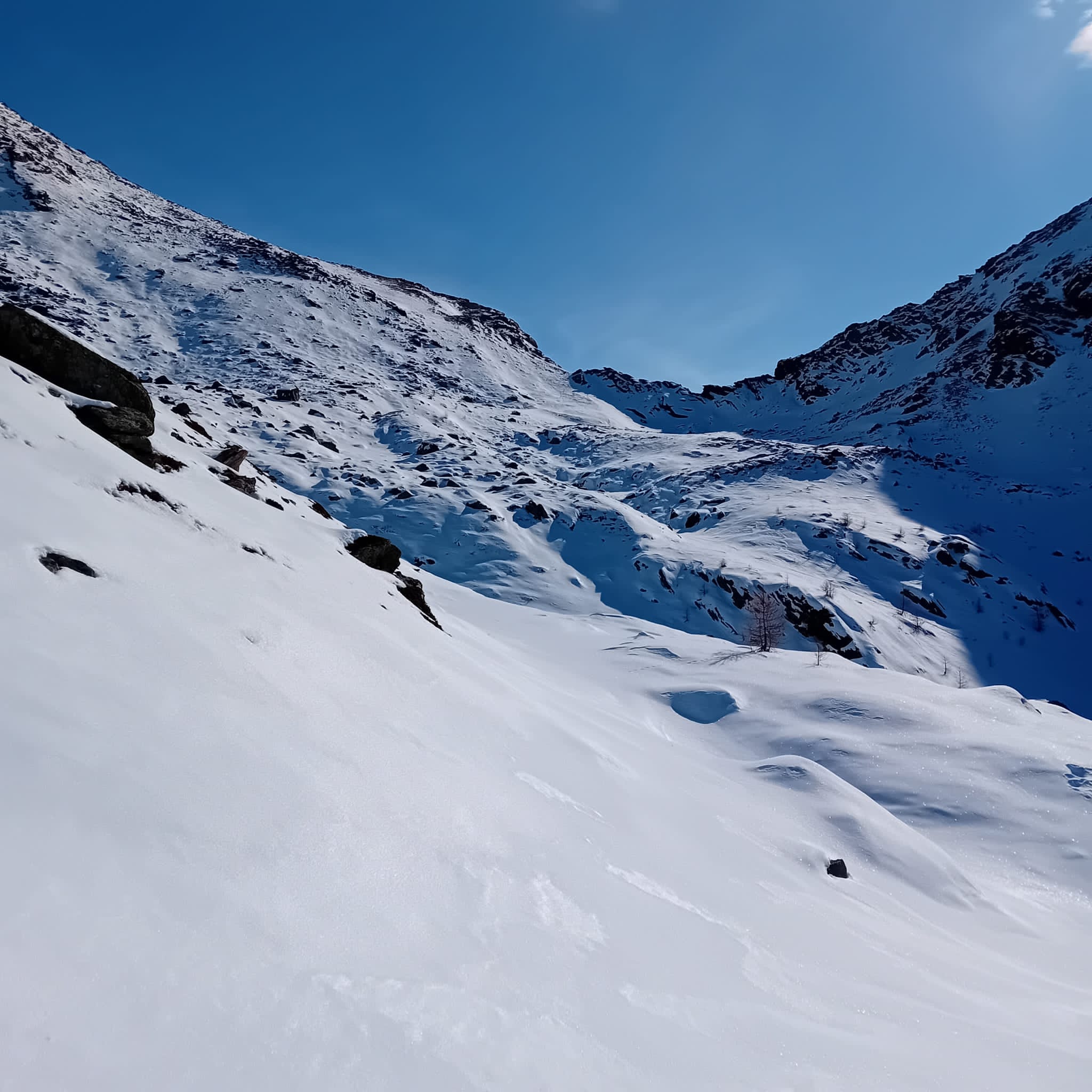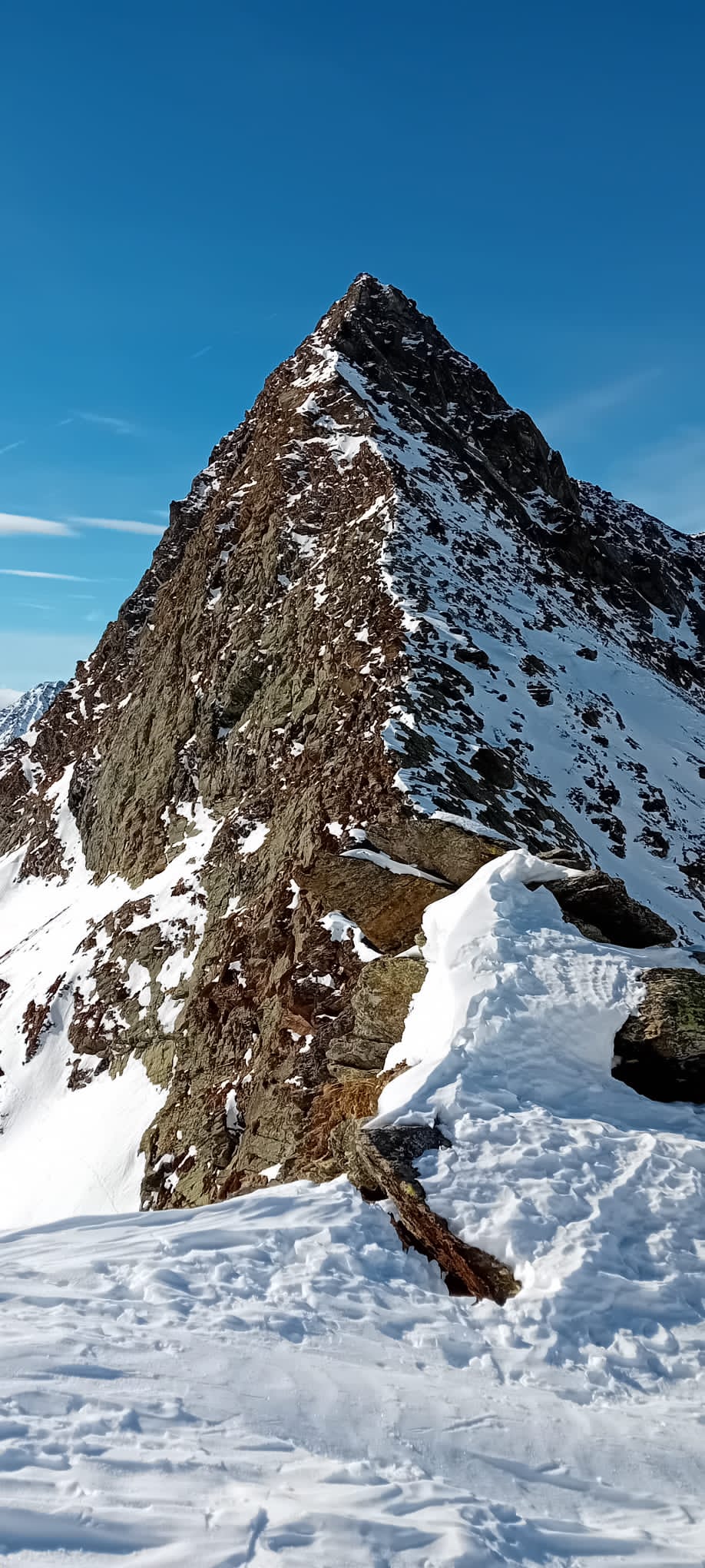 Nebbia fino a 2000 m ca poi sereno, gita onesta, bella la sagoma del Peigrò ed i suoi canalini. La neve, beh c'è: primi metri…