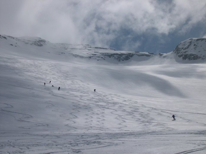 | sergioenrico | l'evolversi della gita | sergioenrico | la zona centrale | sergioenrico | in discesa nela parte alta | sergioenrico | la prima parte di discesa | sergioenrico | scendendo dal cratere tra sbuffi di fumo | sergioenrico | la seconda parte dell'itinerario | sergioenrico | seconda parte dell'itinerario, a sinistra il traverso dove si esce sull'ultimo pendio | sergioenrico | inizia la discesa dal bivacco | sergioenrico | sul crestone verso la punta Est | sergioenrico | l'arrivo al Col Perrin con lo sfondo del vallone che conduce alla Gran Cima | sergioenrico | l'arrivo al colletto dove si attraversa nel vallone, sullo sfondo la vetta | sergioenrico | la parte finale con il colle e la punta | sergioenrico | la prima parte della discesa | sergioenrico | la punta con a sinistra il colletto di salita | sergioenrico | arrivando all'alpe di Looo superiore