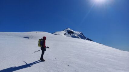Partiti da Pont alle 4.45 con clima abbastanza caldo che difficilmente ci ha fatto ben sperare nel trovare condizioni buone della neve. Percorsa tutta la morena…