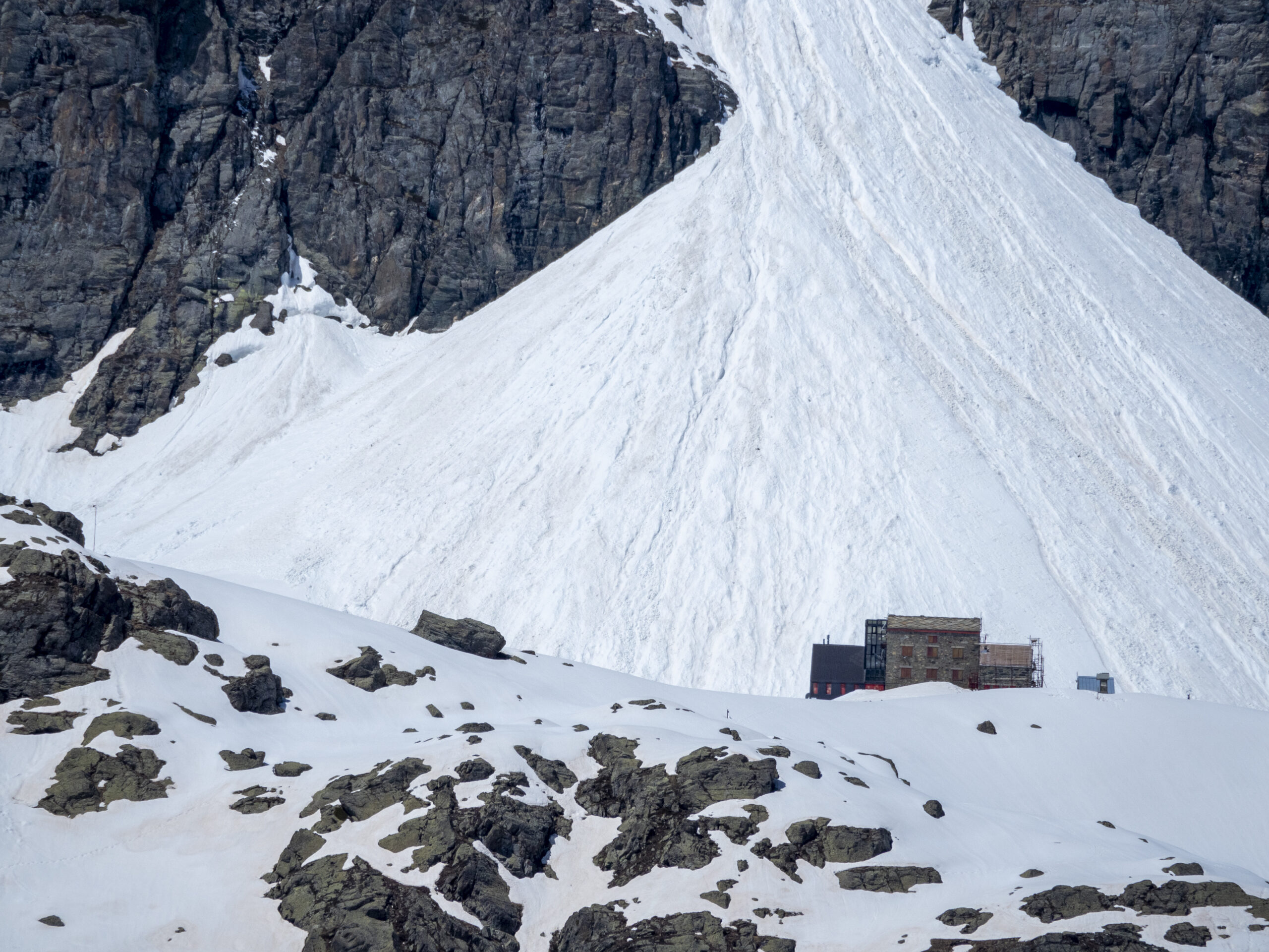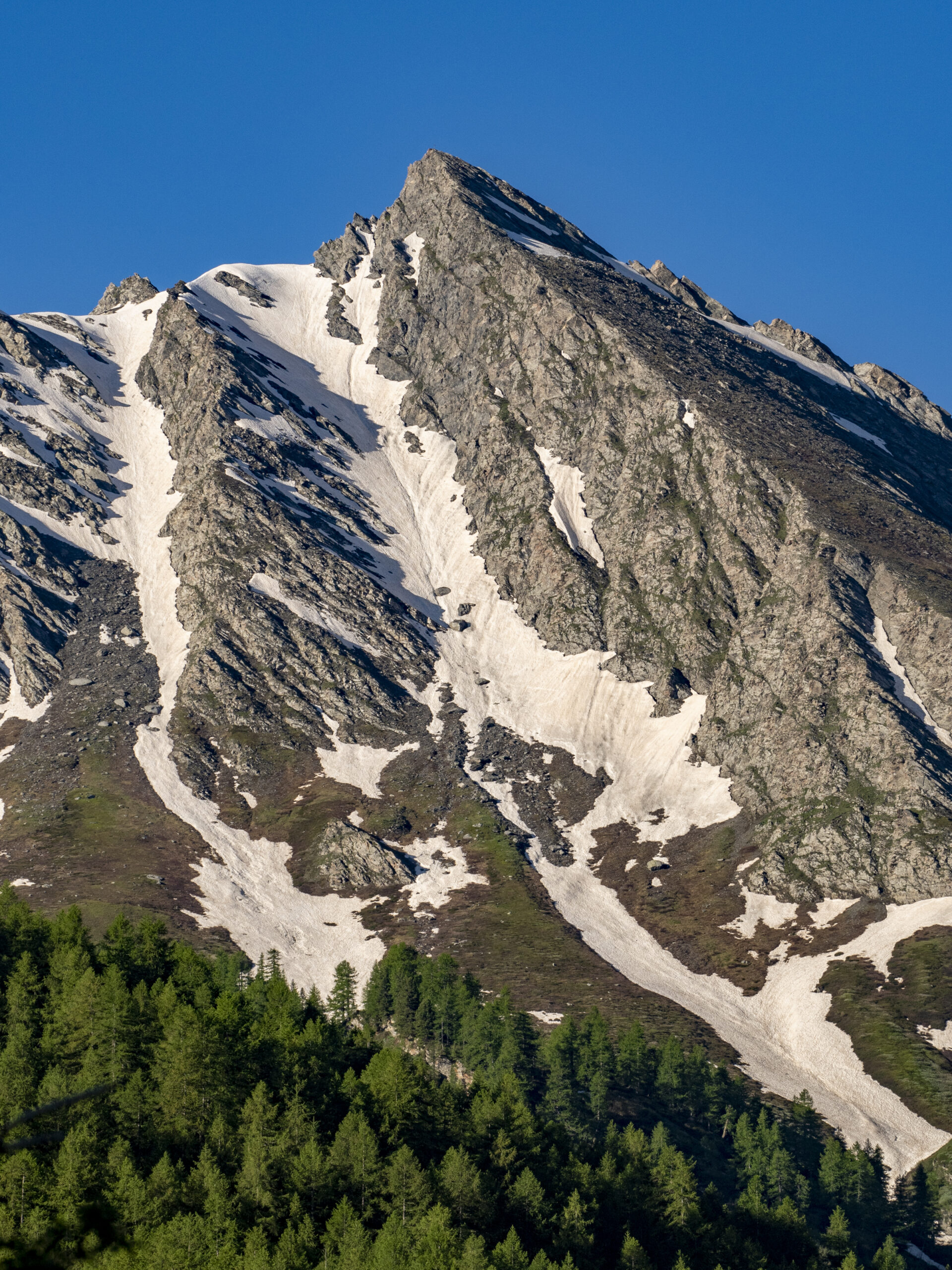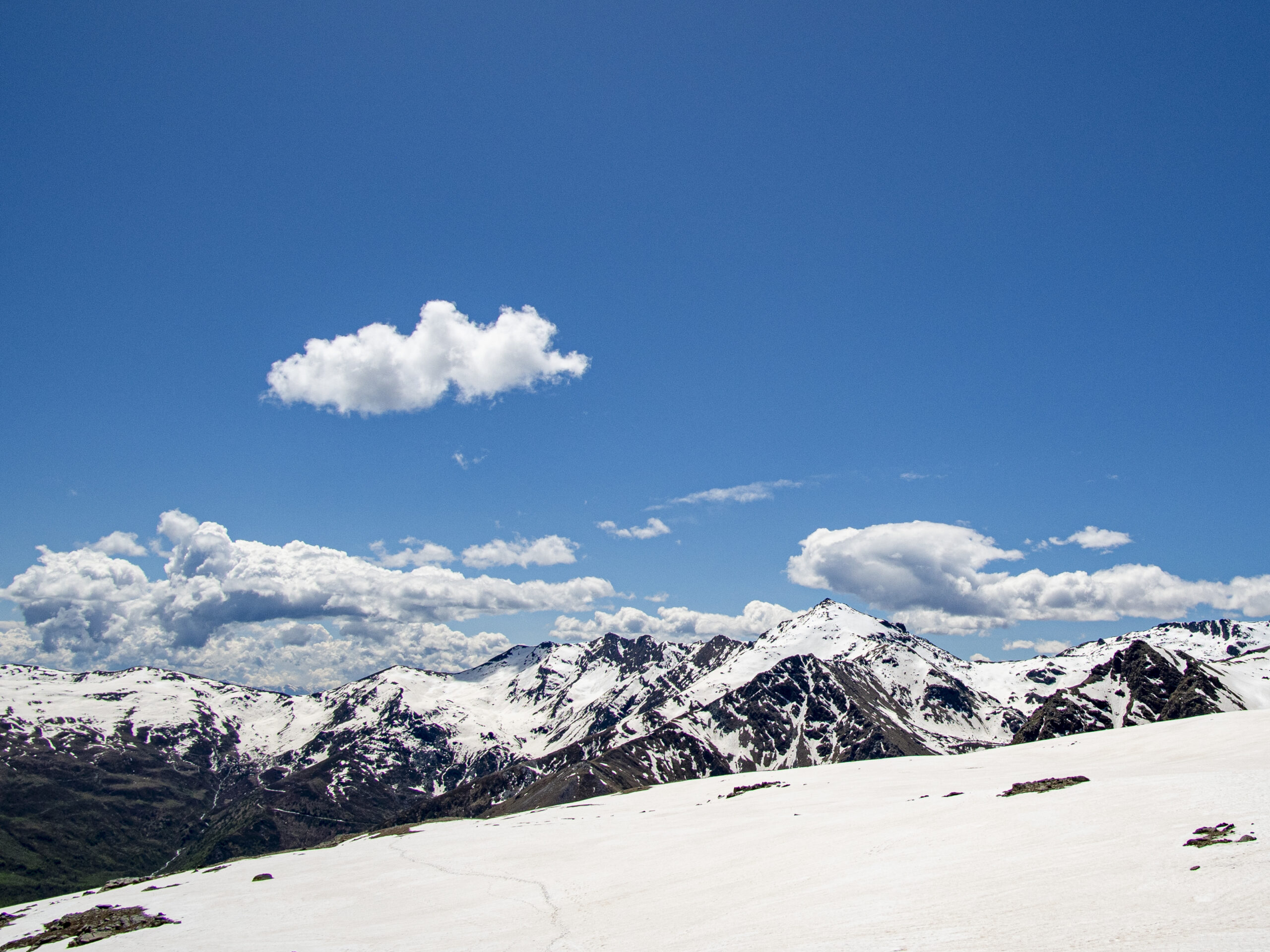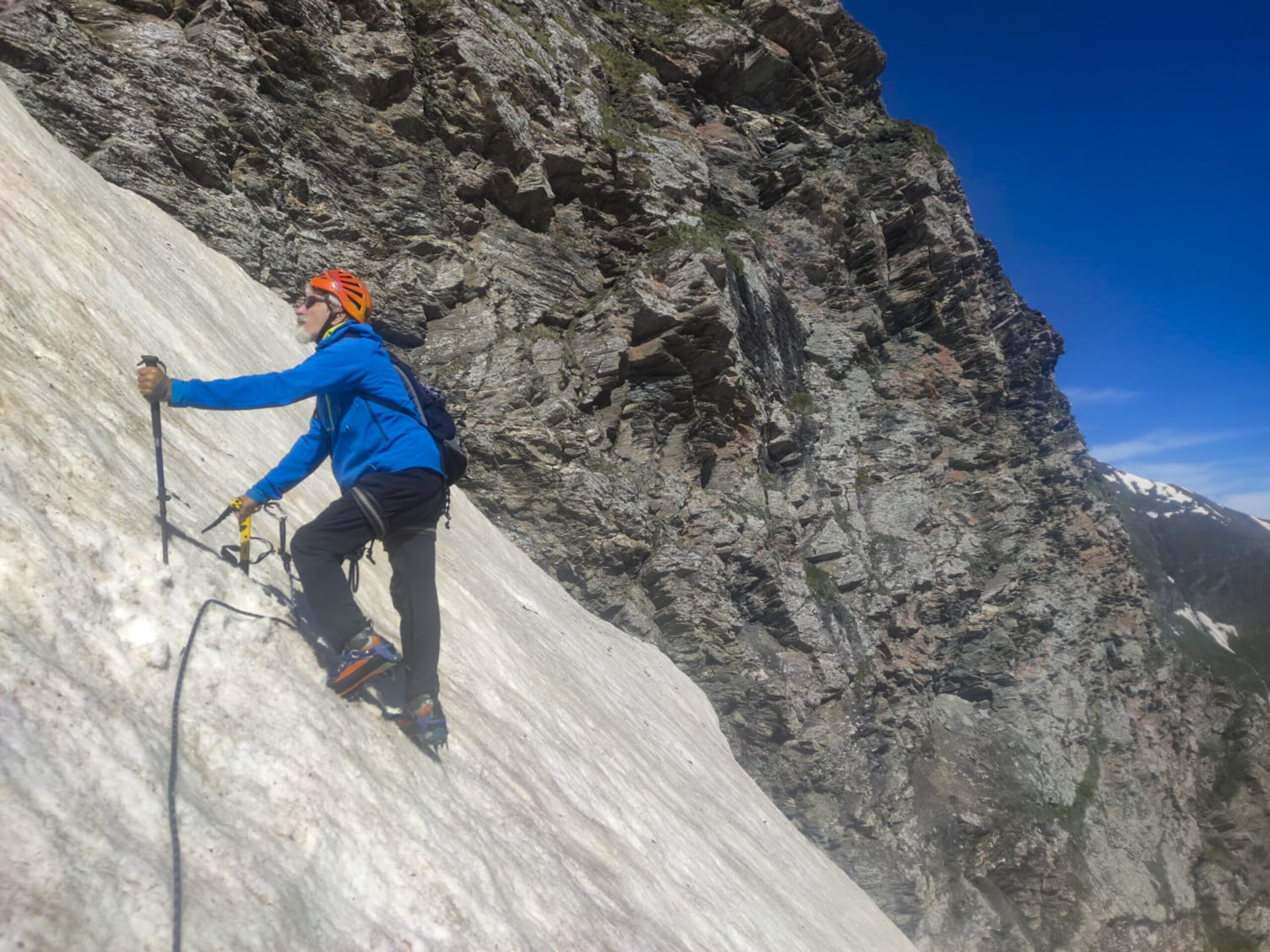 Salti bene sulla faticosa pietraia, ancora un nevaio verso la cima (evitabile)